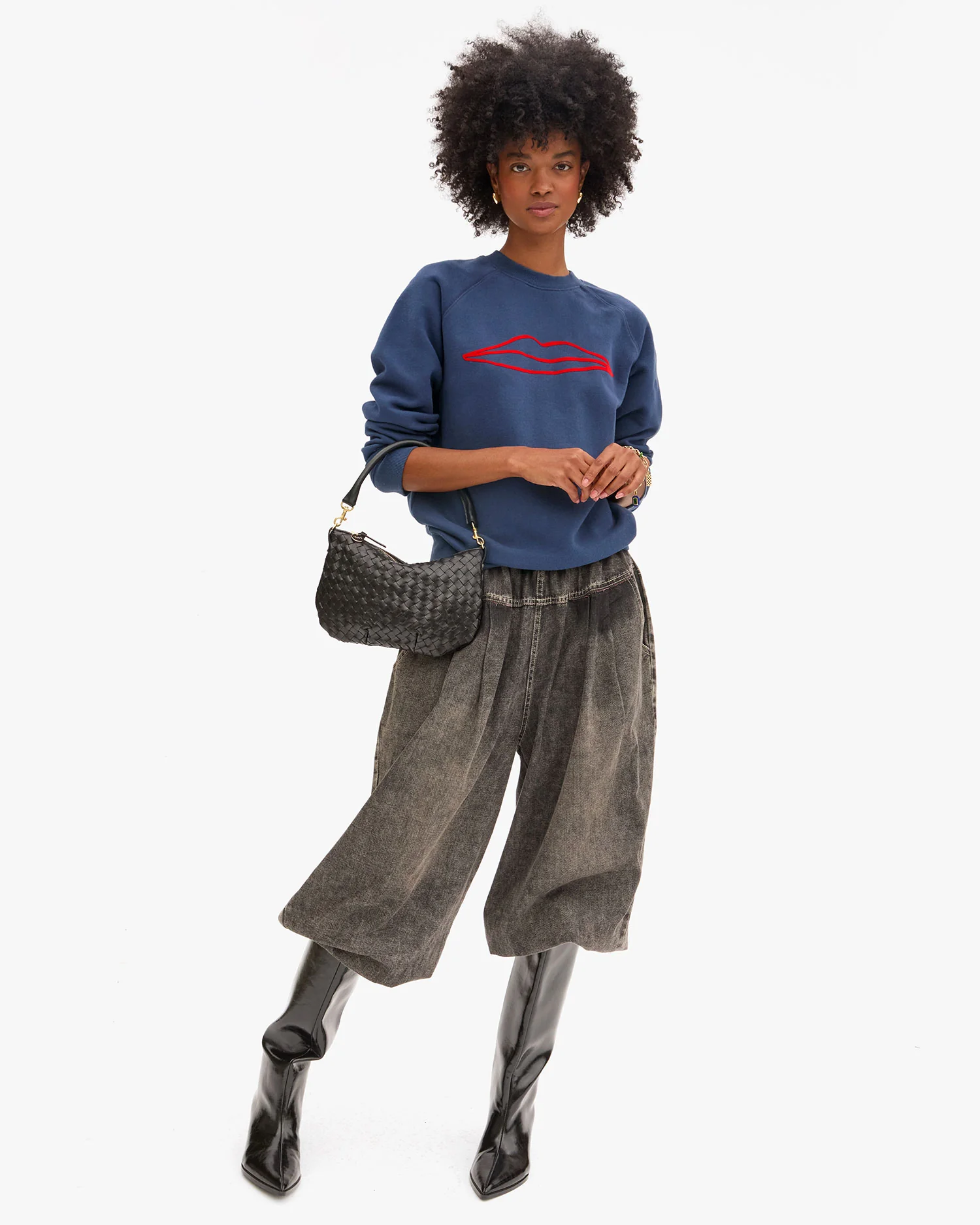 Clare V. - Petit Moyen Messenger (Diagonal Woven Black)