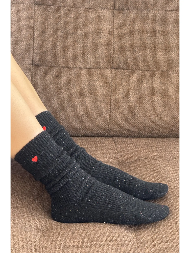 Le Bon Shoppe - Embroidered Snow Socks (Black Heart)