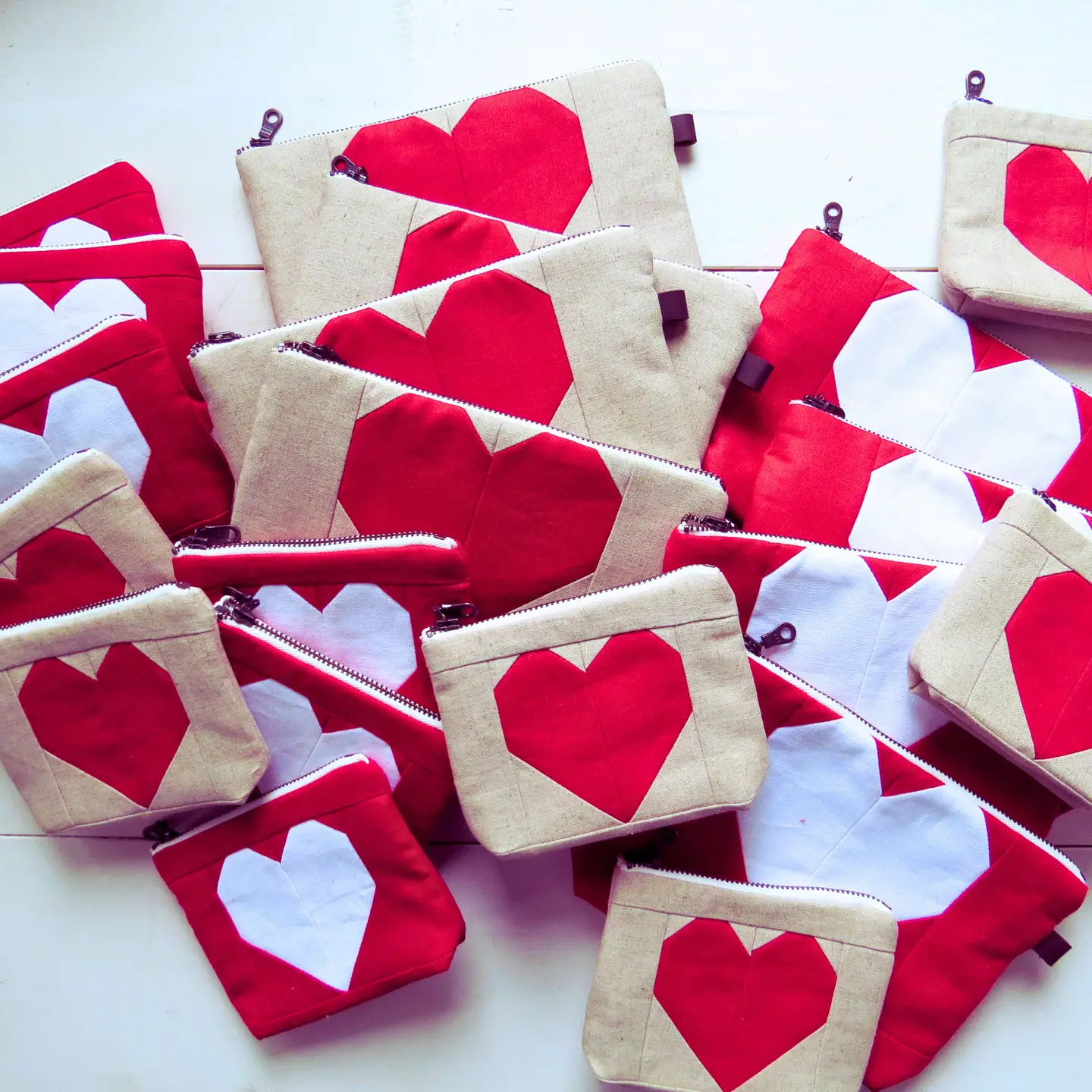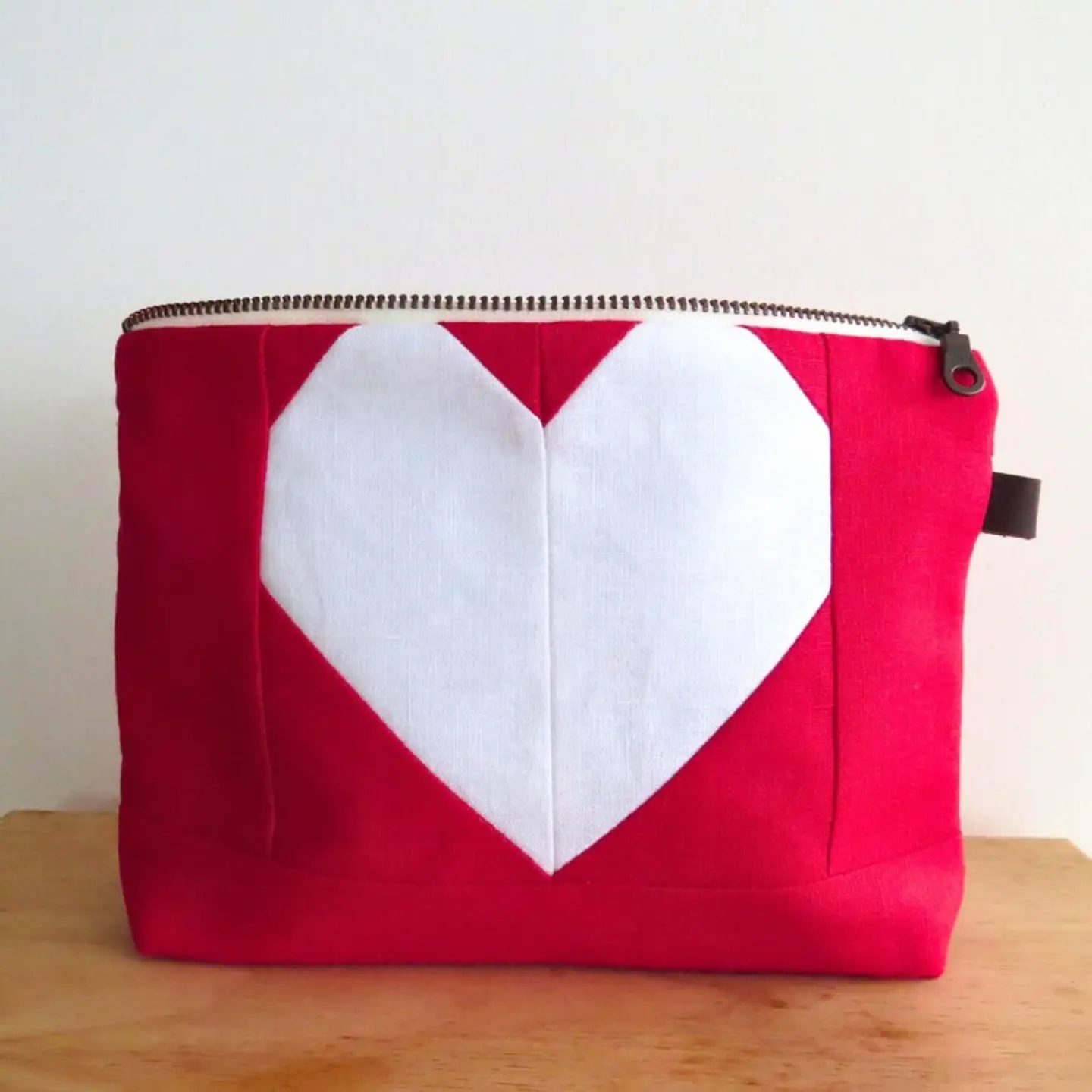 Timeless craftsmanship meets everyday function in this medium quilted pouch, handmade from a linen/cotton blend and pieced with a classic Heart quilt block. Each pouch is individually quilted and thoughtfully finished, celebrating the beauty of handmade textiles with a touch of modern charm.