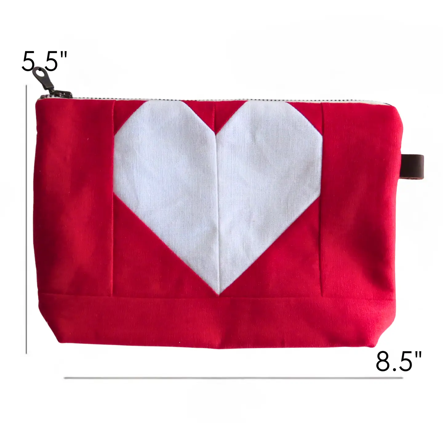 PaperFromHeaven - Heart Zipper Pouch (Red/White)