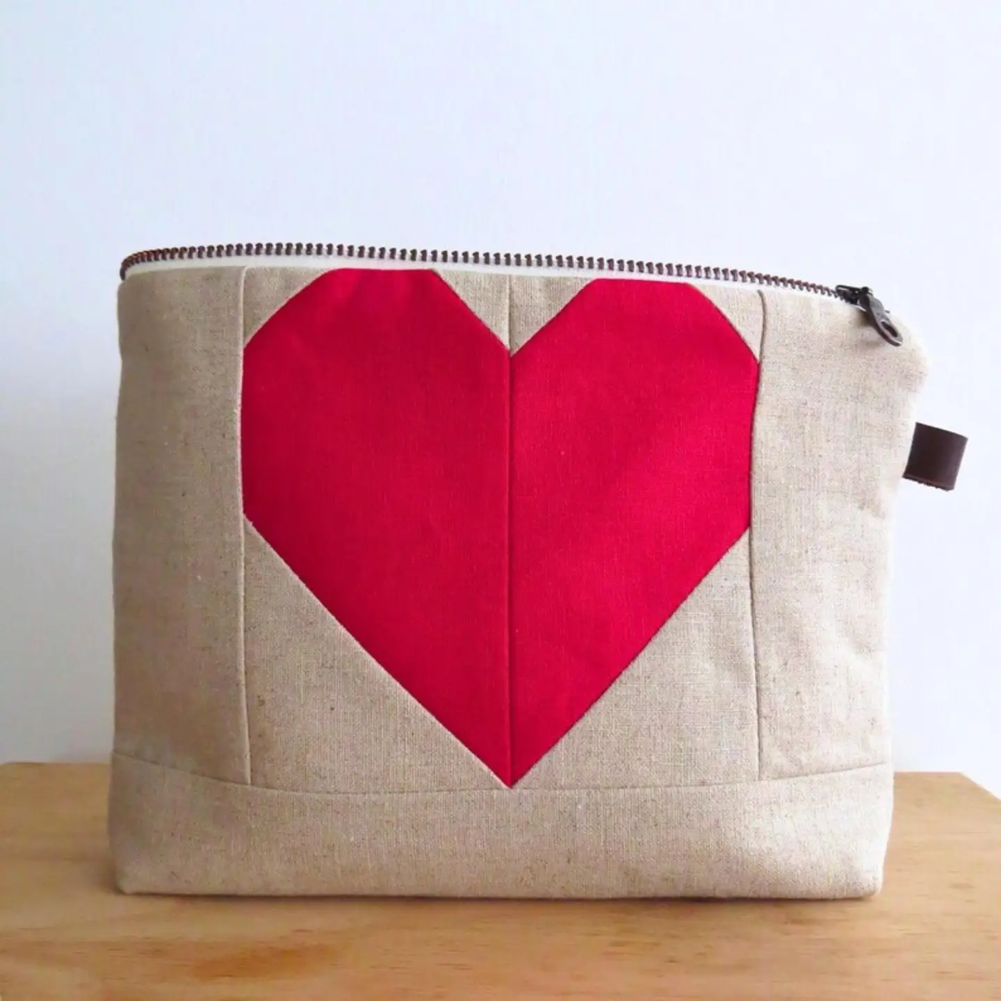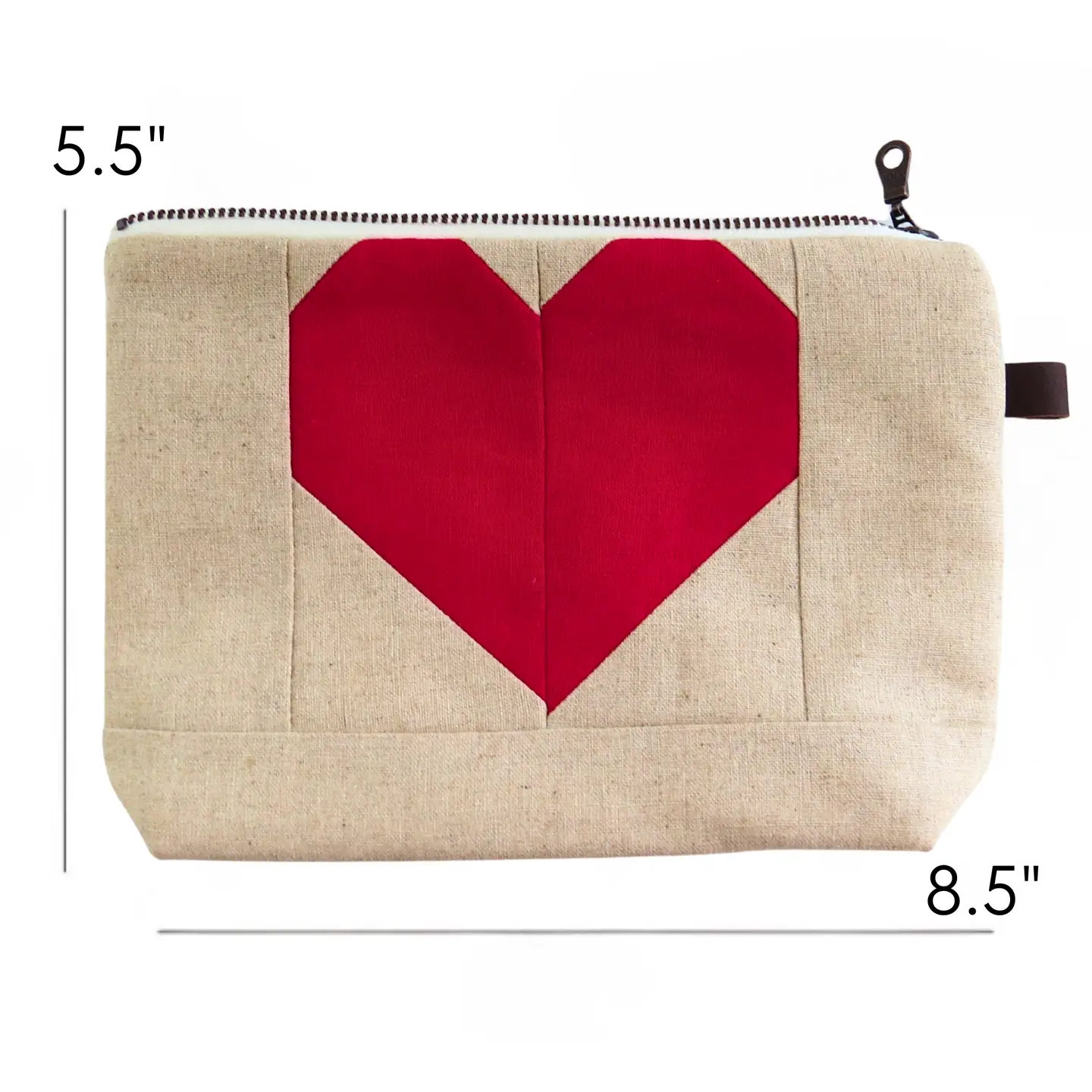 PaperFromHeaven - Heart Zipper Pouch (Linen/Red)