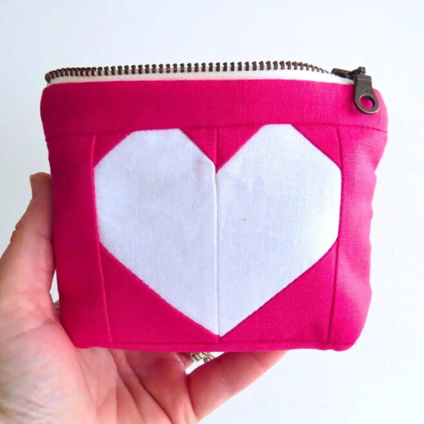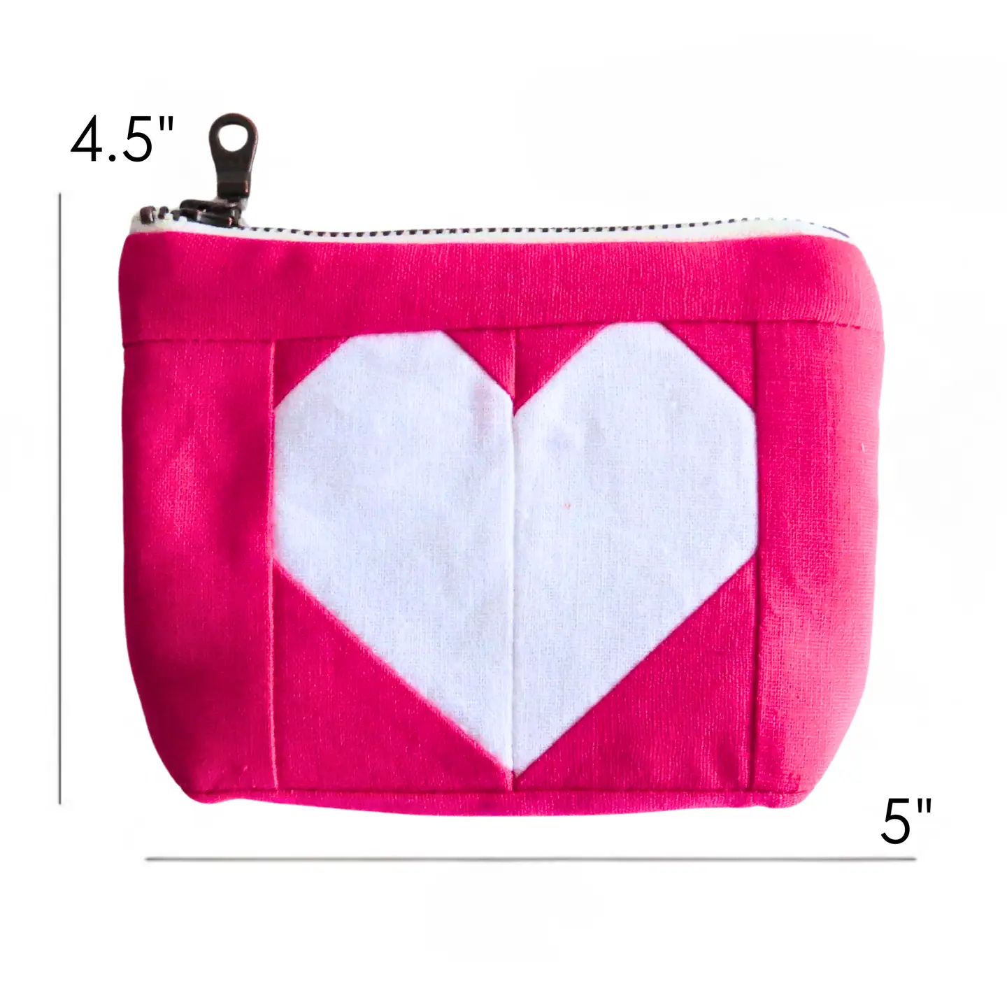 Timeless craftsmanship meets everyday function in this small, quilted pouch — handmade from a linen/cotton blend and pieced with a classic heart quilt block. Each pouch is thoughtfully designed and individually quilted to create a one-of-a-kind accessory that celebrates the beauty of handmade textiles.