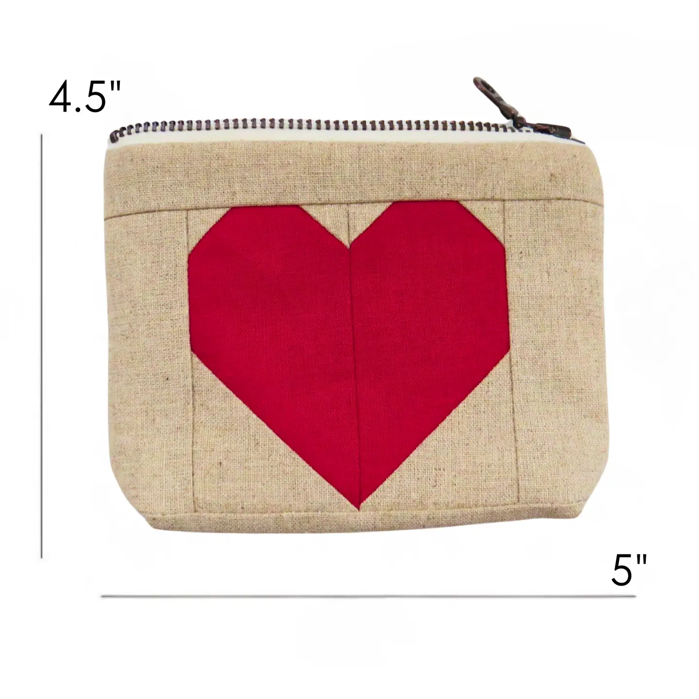 Timeless craftsmanship meets everyday function in this small, quilted pouch — handmade from a linen/cotton blend and pieced with a classic heart quilt block. Each pouch is thoughtfully designed and individually quilted to create a one-of-a-kind accessory that celebrates the beauty of handmade textiles.
