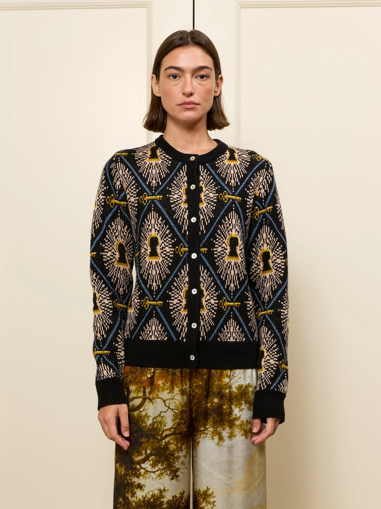 Ann Mashburn - Ellen Cardigan (Camel/Misty Blue)