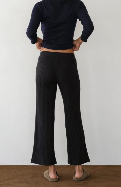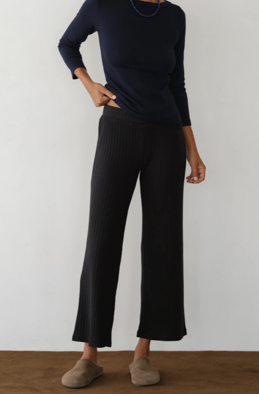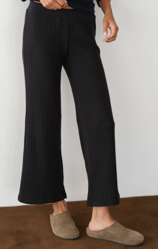 The Rib Kick Flare, a favorite seasonless essential now offered in a thick sweater knit. Crafted with an ultra-flattering and comfortable rib fabric, featuring a fine rib texture, pintucked detailing, high-rise fit and kick flare.