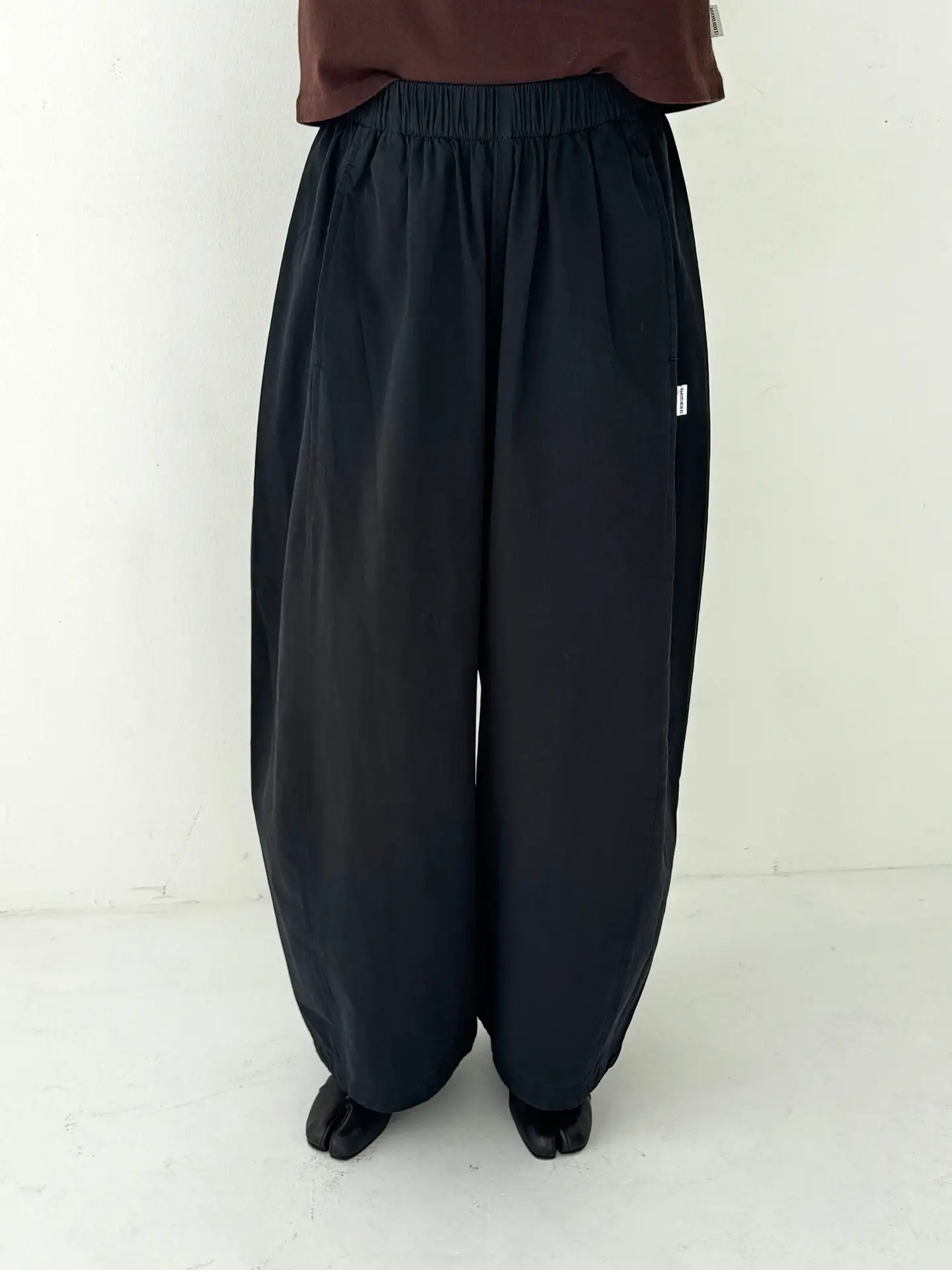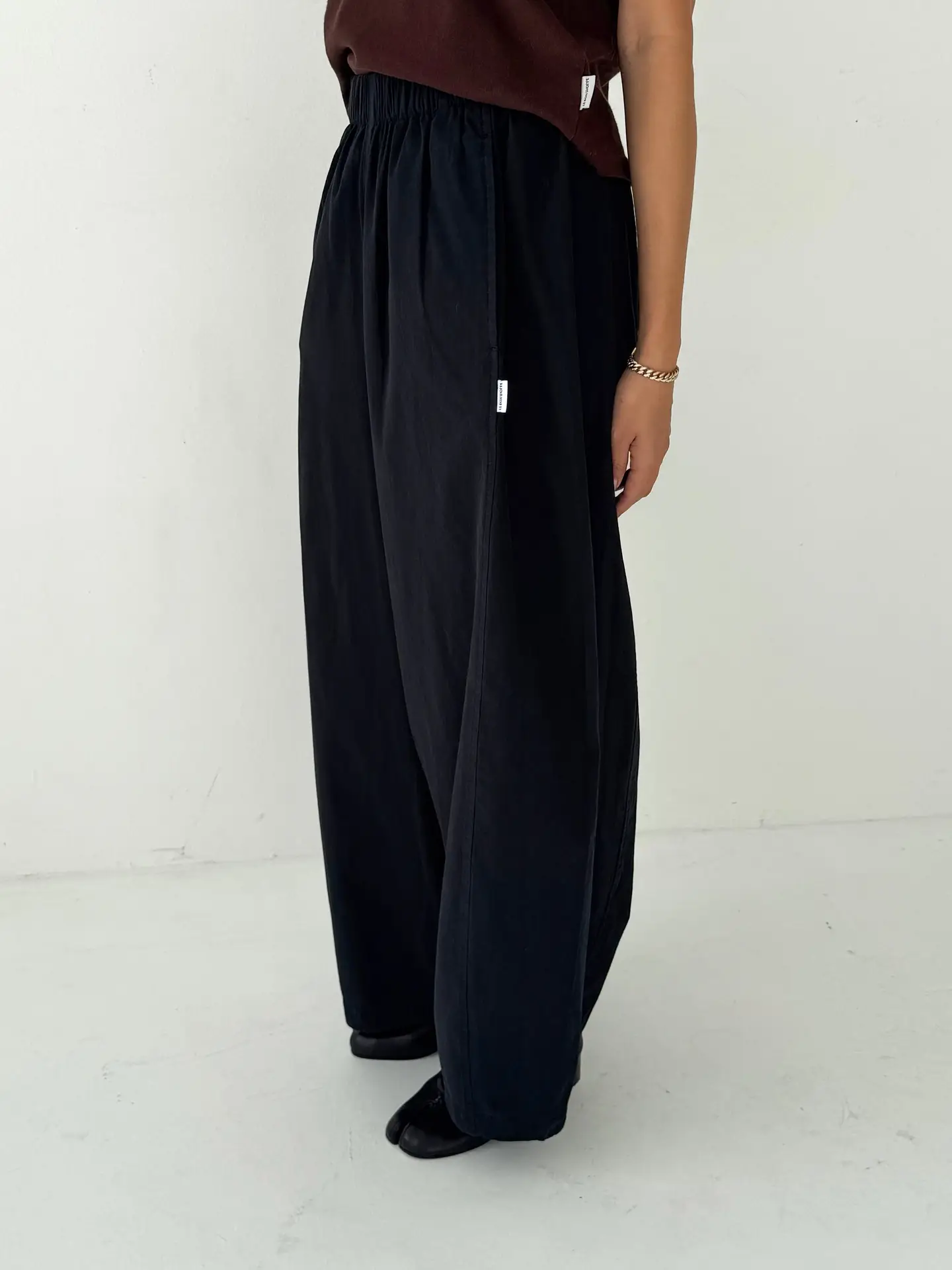 Billowy pants made to move with you throughout the day. Crafted from a light yet durable and elevated cotton they're the kind of pair you can wear anywhere, from casual moments to polished looks. Designed with an elastic waist and side pockets, their unique leg shape sets them apart. A third side panel adds extra volume, creating a sculptural silhouette that’s relaxed, airy, and full of movement.
