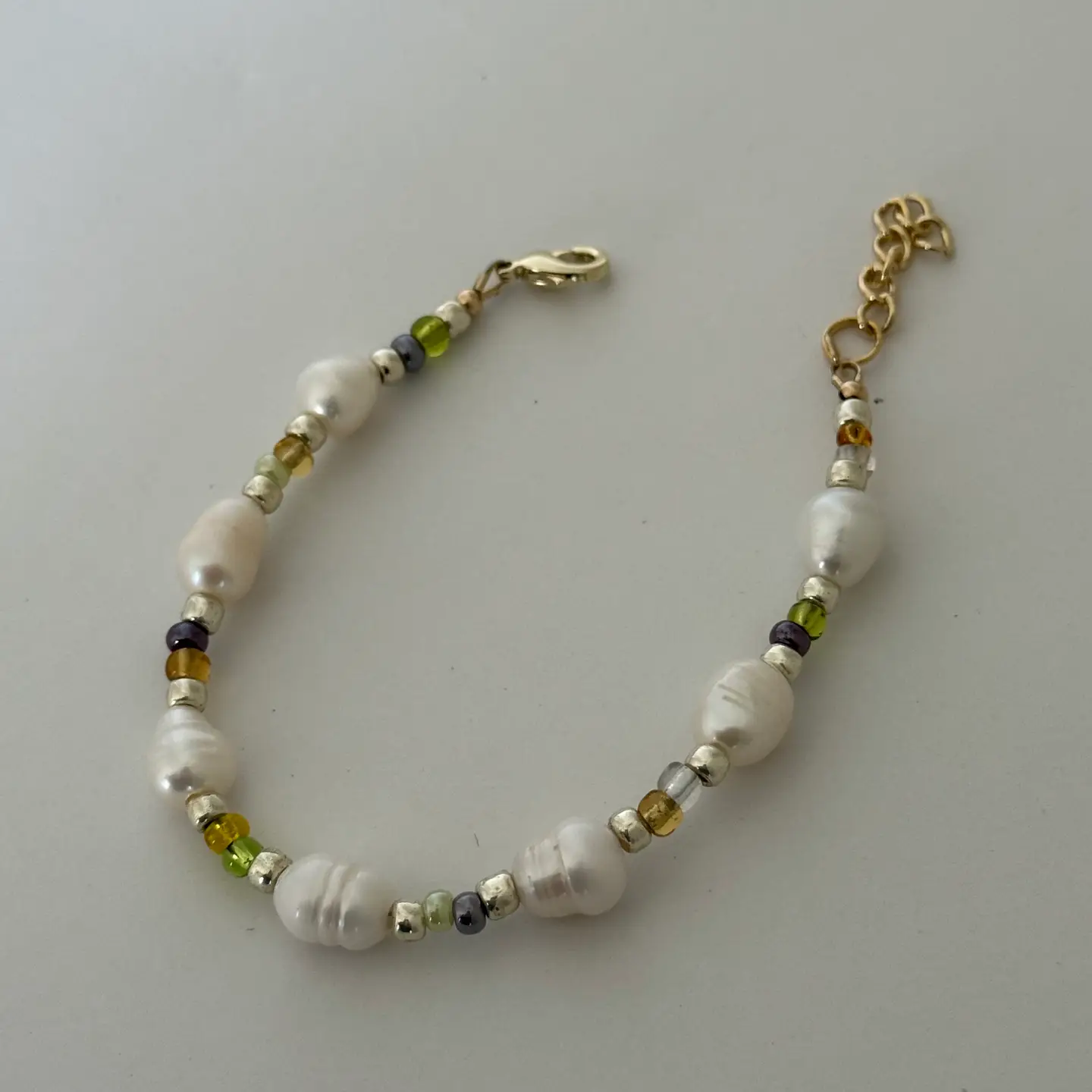 Ethereal and effortlessly elegant, the Mauve Bracelet features a luminous mix of freshwater pearls and Japanese seed beads—many of them clear to catch the light like seafoam under moonlight.