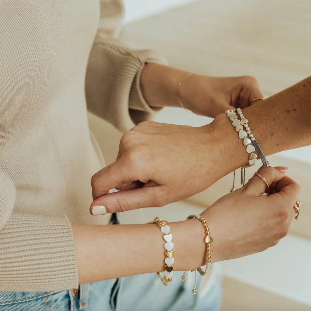 Join hearts with one another and allow that joy to be amplified and become contagious. Wear this bracelet in celebration and gratitude for the gift of sisterhood.