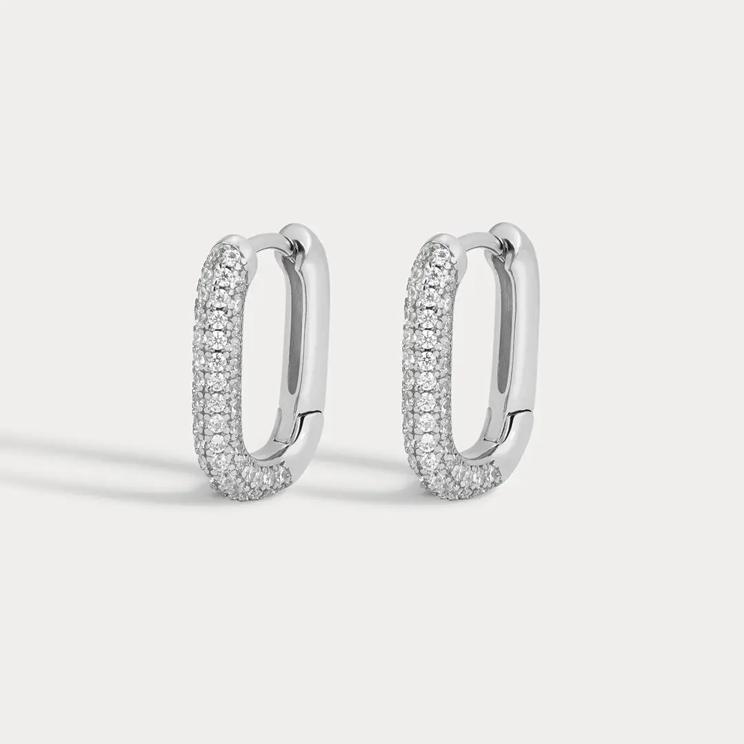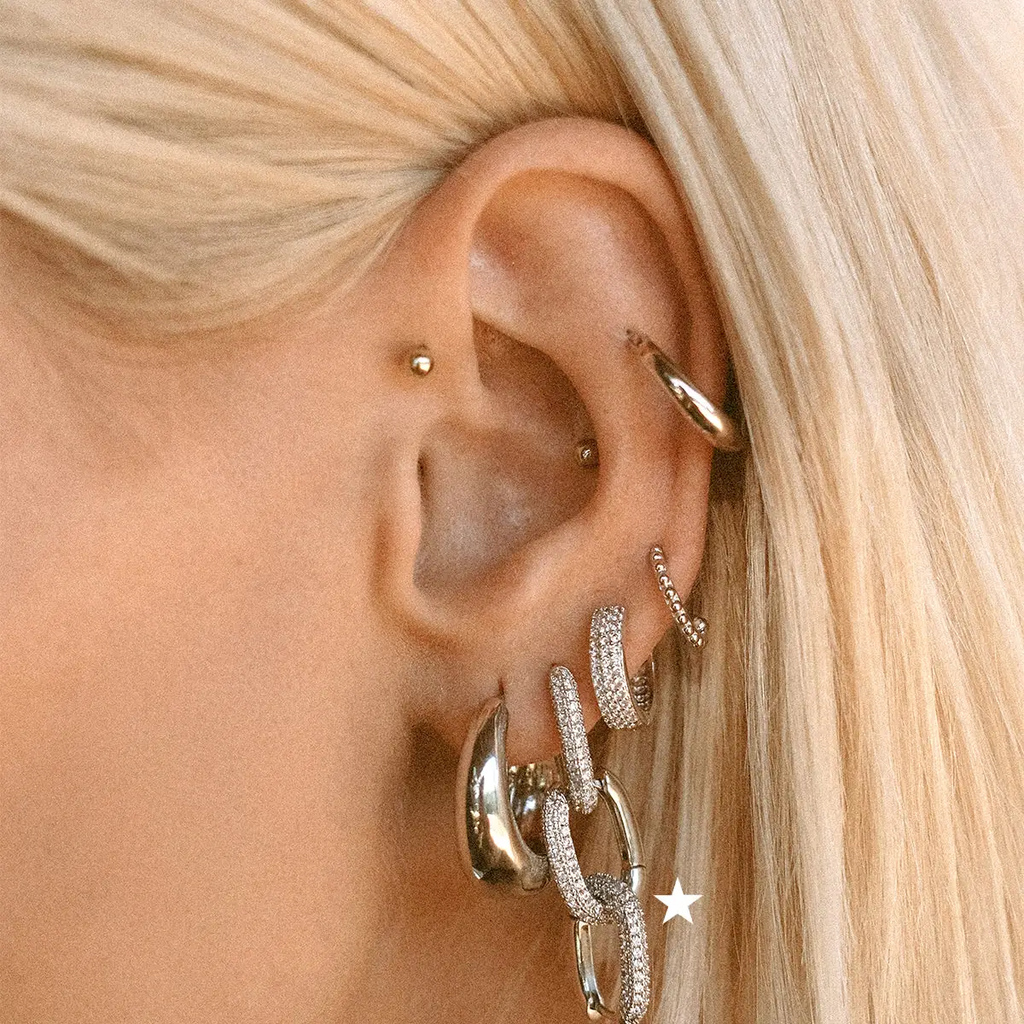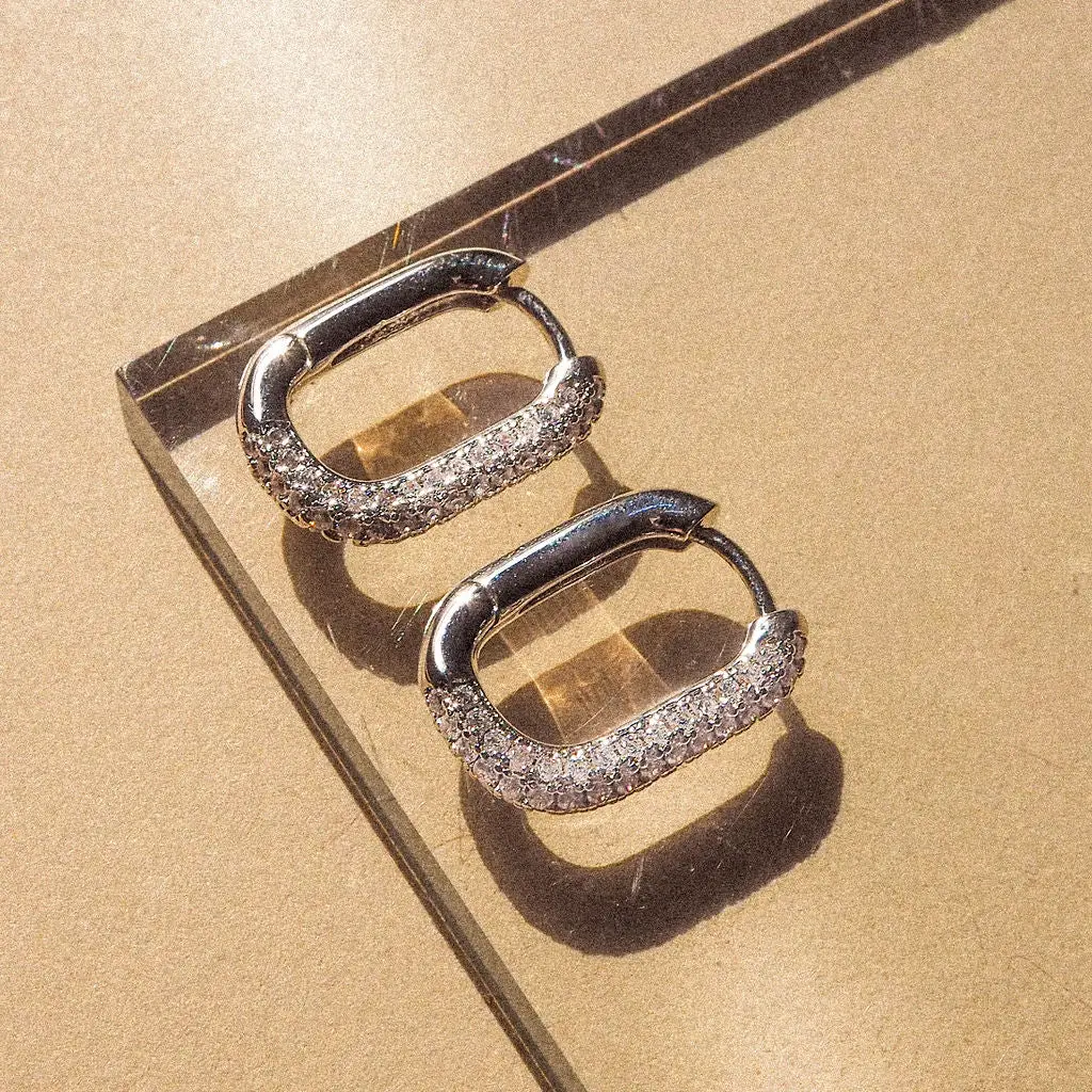 Luv AJ - Pave Chain Link Huggies (Silver)