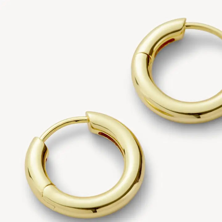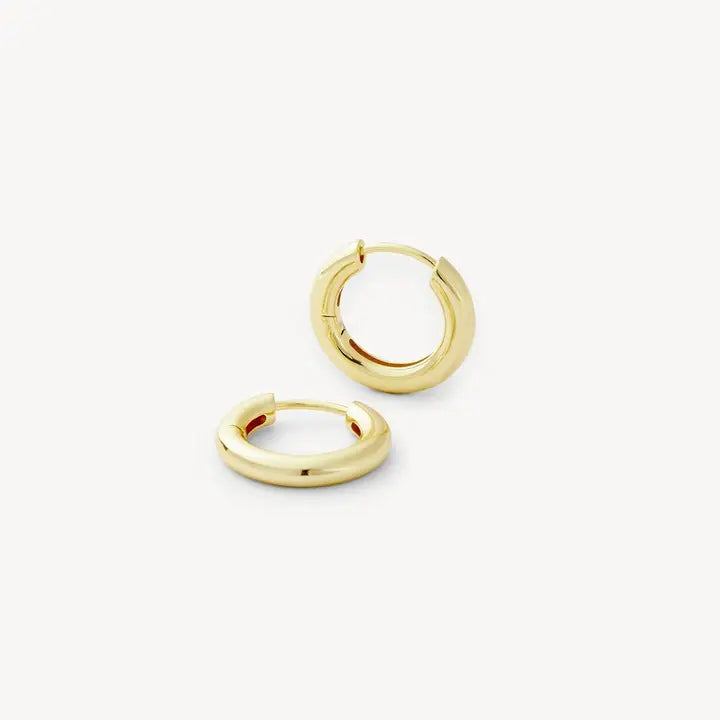 n everyday hoop, handmade from recycled brass with 14K gold plating and a hinge closure