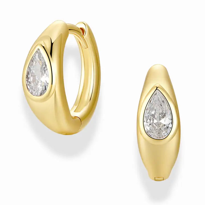 Mod + Jo - Tally Pear Huggie Hoops (Gold) is backordered and will ship as soon as it is back in stock.