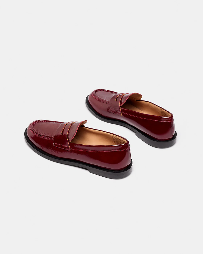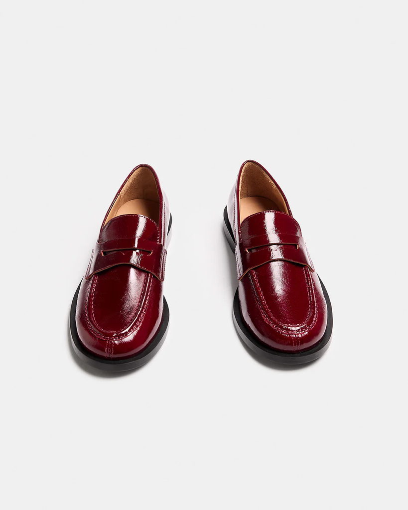 GLASS is a moccasin-style shoe made from patent leather.