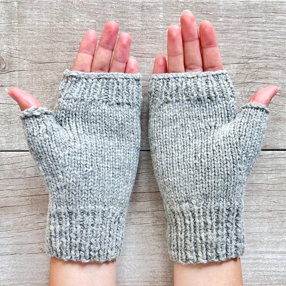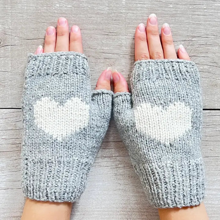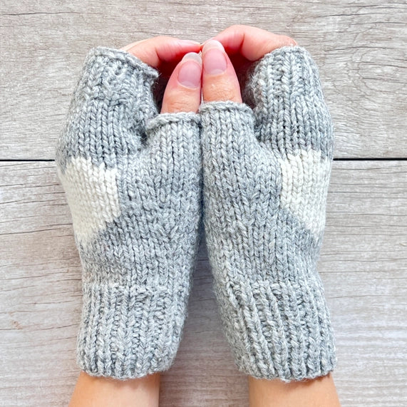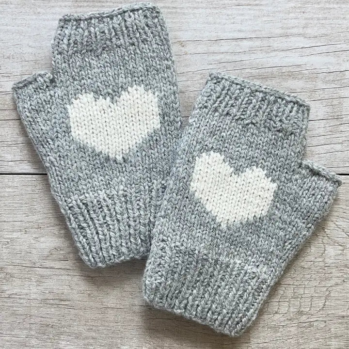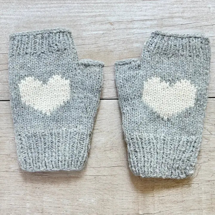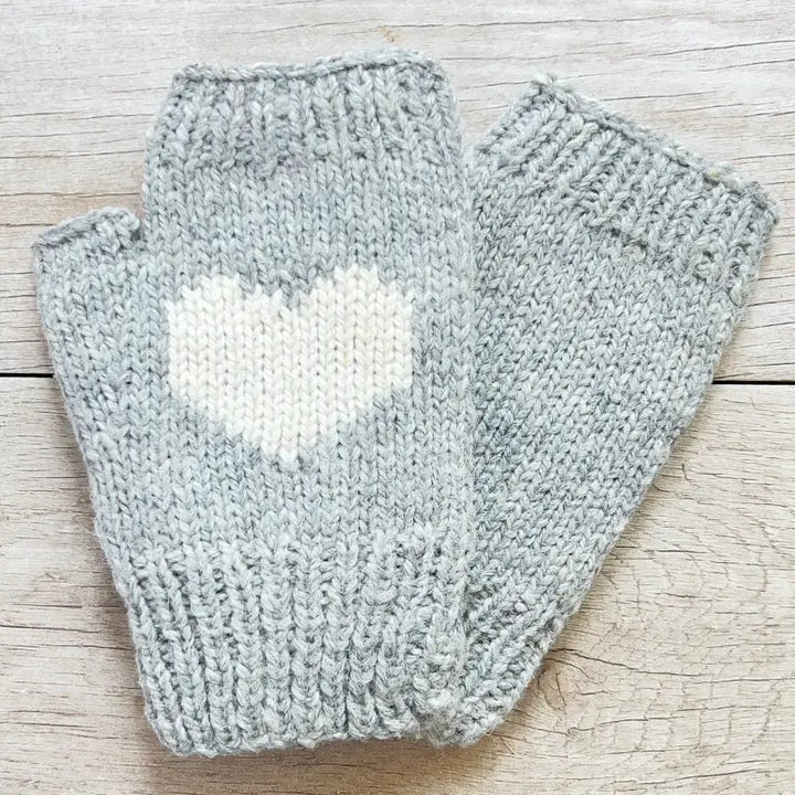 Ella Sussman - Short Fleece Lined Alpaca Fingerless Gloves (Gray/Cream Heart)