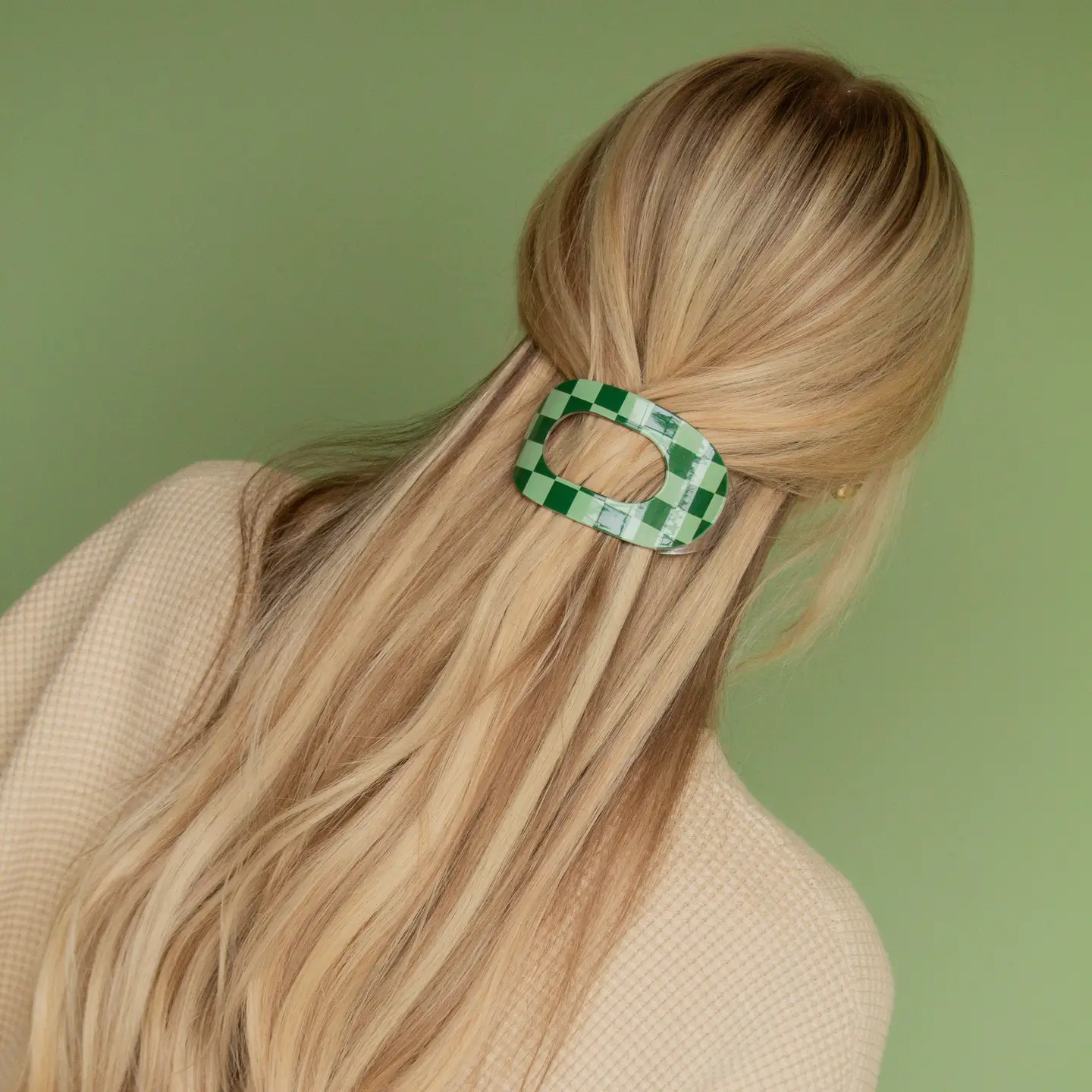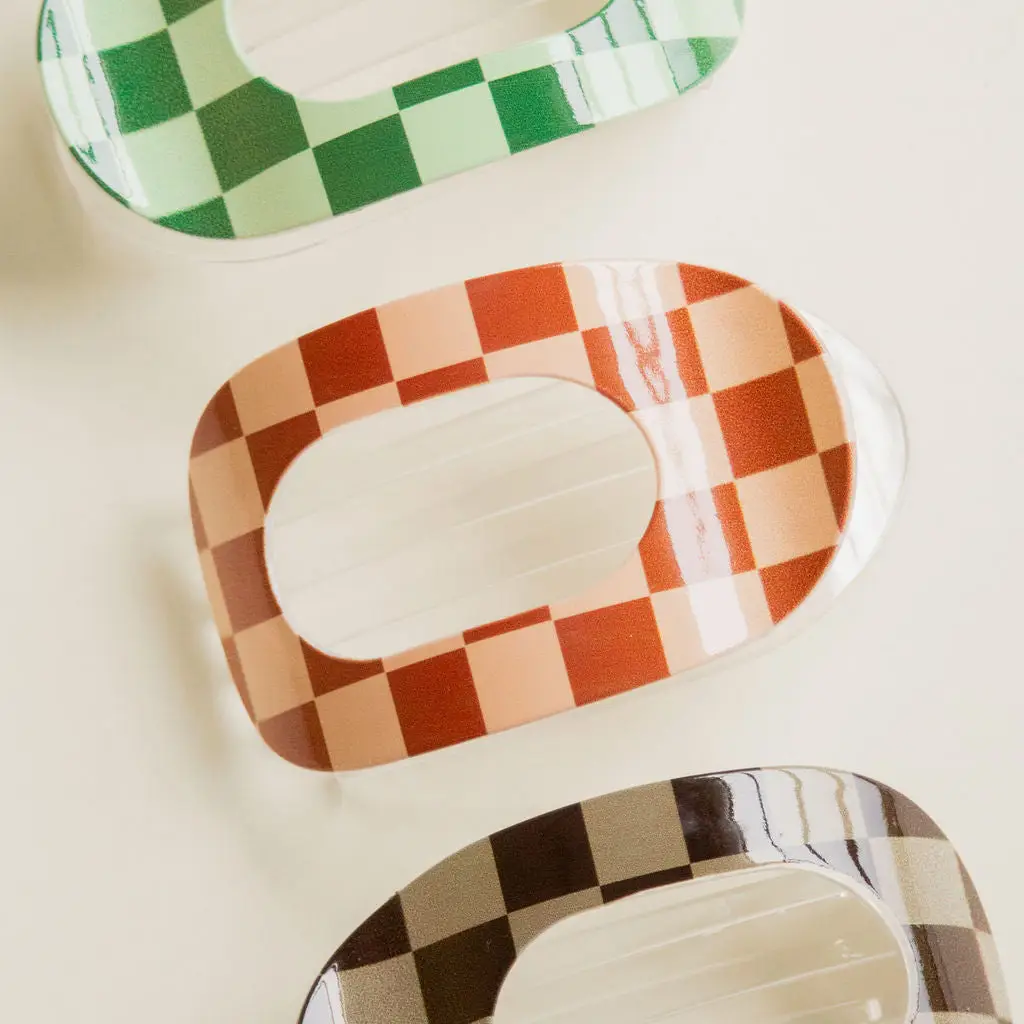 ANDi - Checkered Circle Cutout Flat Claw Clip (Green Check)