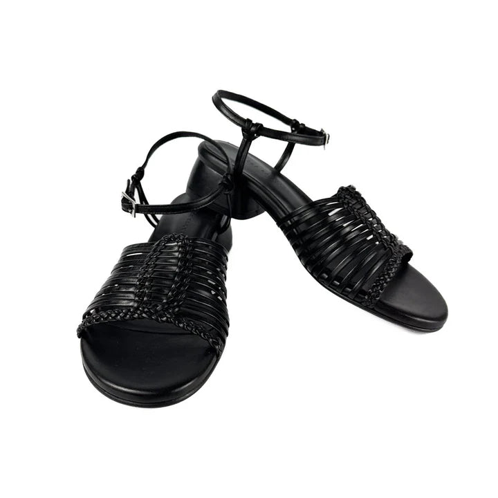 Elevated and fresh—a summer-inspired block heel sandal, woven from soft leather by a women-led team of artisans. See their craftsmanship in the braided details—every knot is tied by hand.