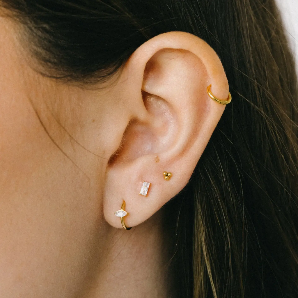The earrings you’ll never want to take off. Our threadless flat back studs are designed for everyday comfort - no poking, no snagging, just effortless shine. Made from implant-grade titanium, they’re safe for sensitive ears and perfect for sleeping, showering, and everything in between. Style them solo or stack them for that cool-girl, always-put-together look.