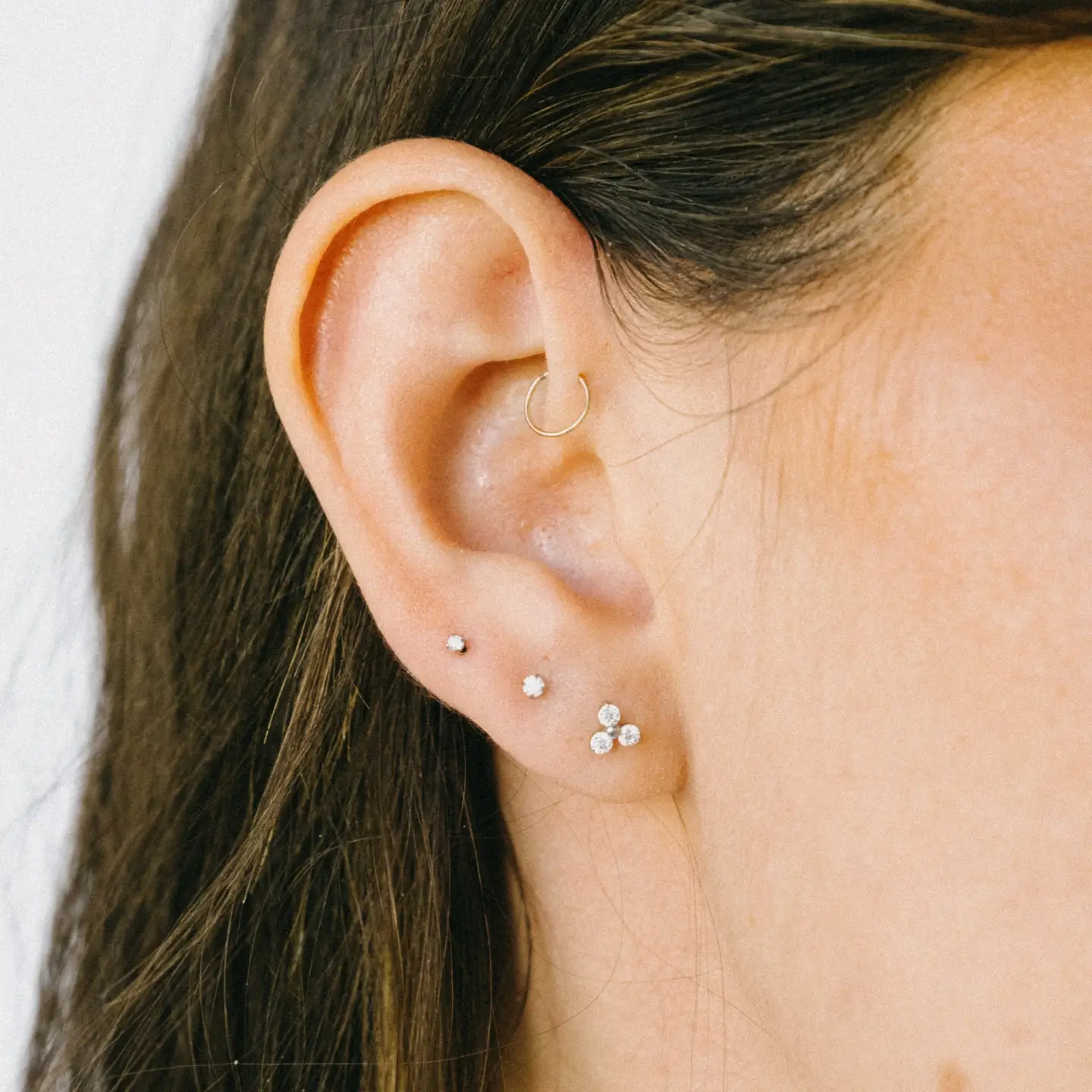 The earrings you’ll never want to take off. Our threadless flat back studs are designed for everyday comfort - no poking, no snagging, just effortless shine. Made from implant-grade titanium, they’re safe for sensitive ears and perfect for sleeping, showering, and everything in between. Style them solo or stack them for that cool-girl, always-put-together look.