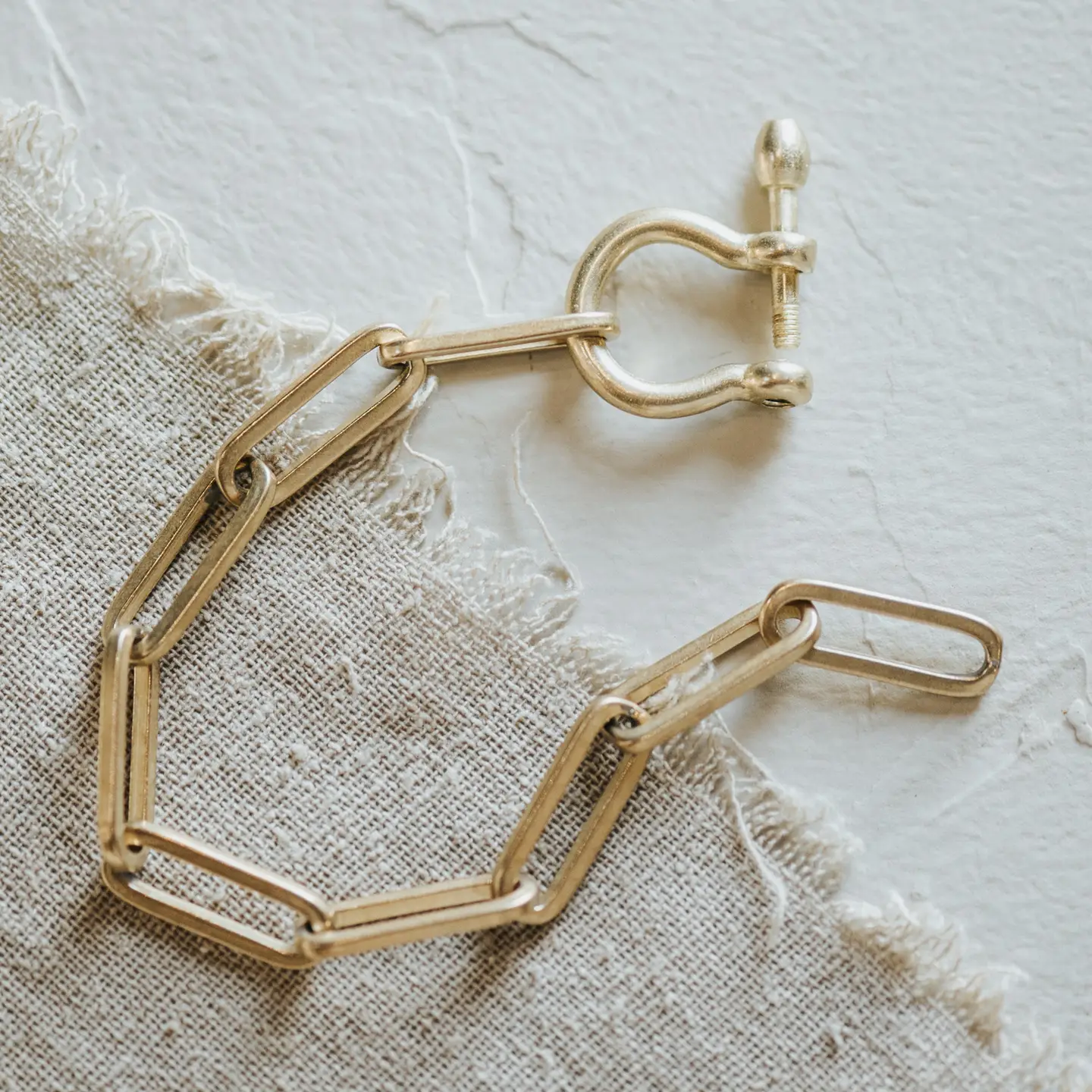 A shackle style clasp makes a stunning pendant for this exaggerated paperclip chain.