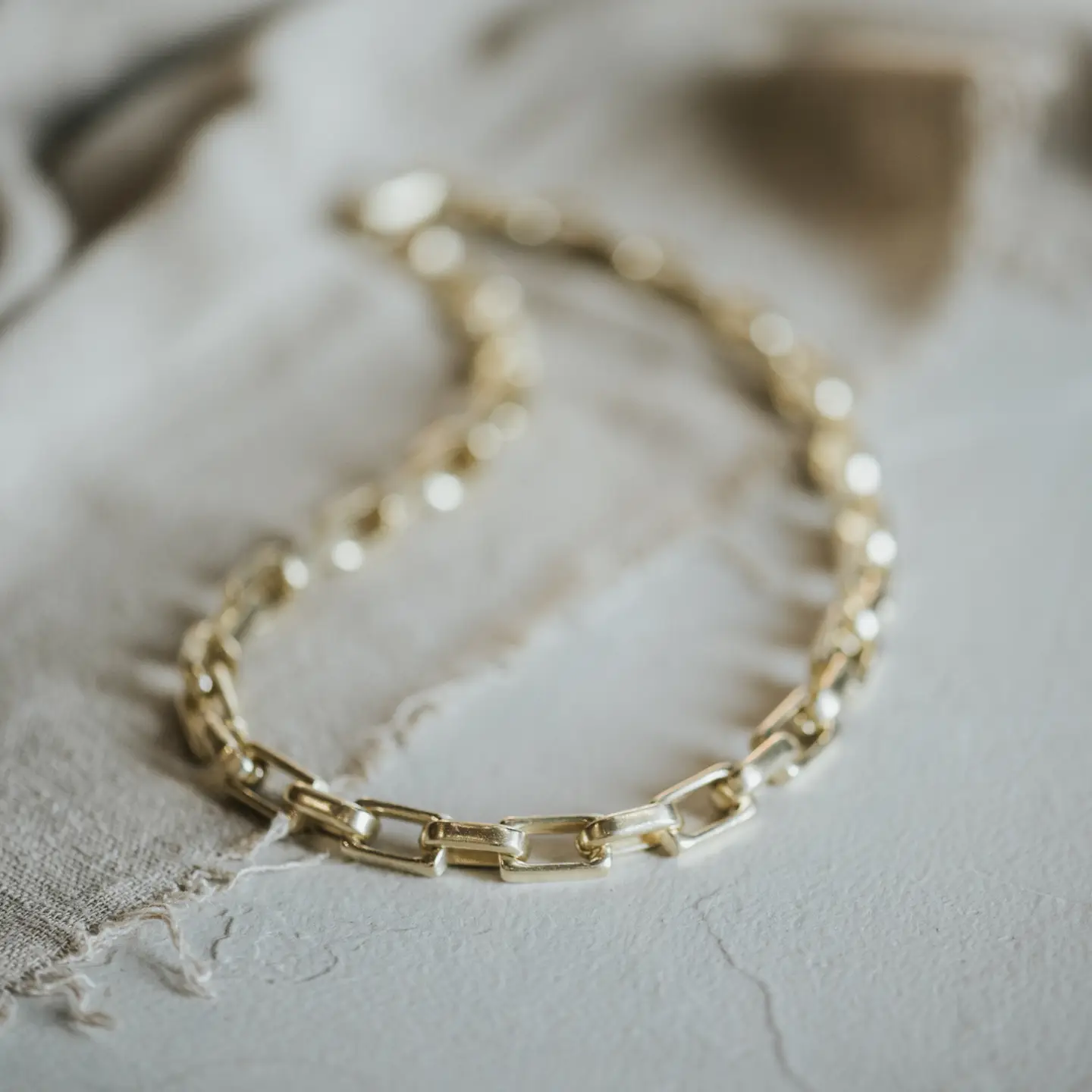 Our exaggerated box style chain makes a bold and stackable necklace, perfect for any collection.