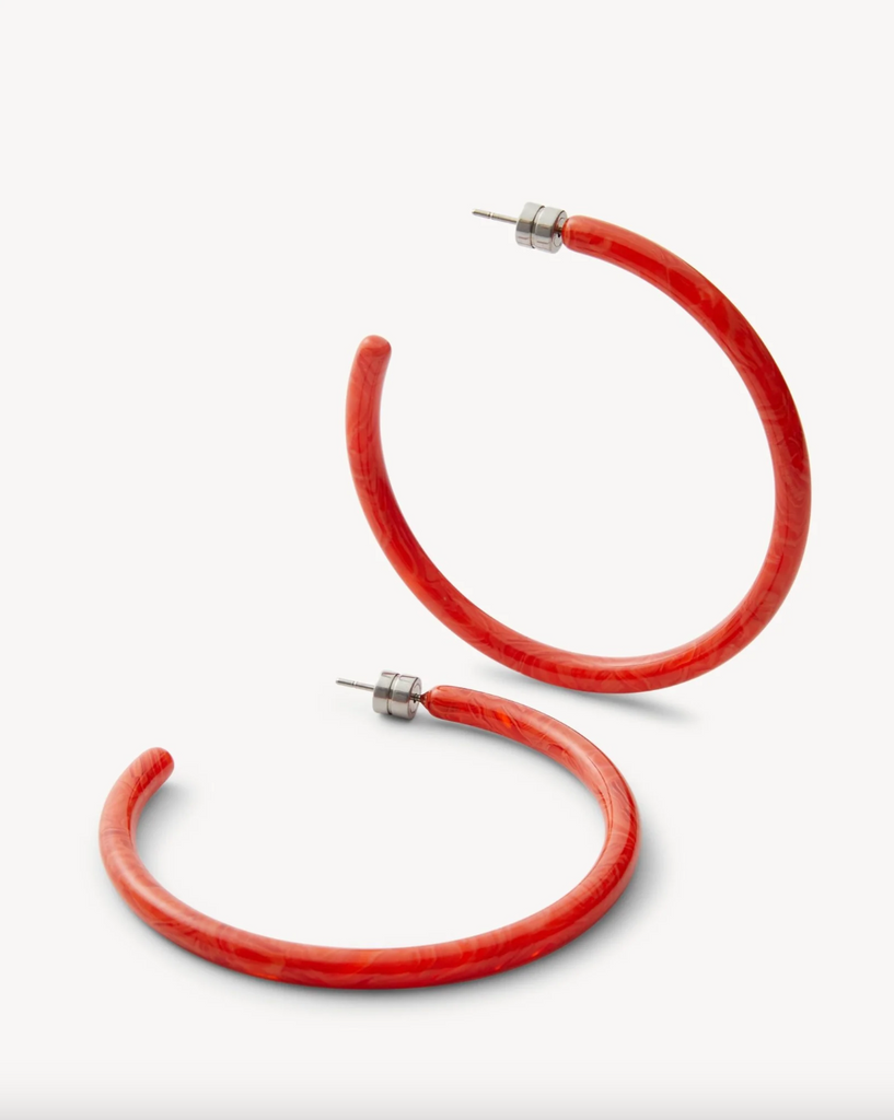 Oversized hoop earrings made from lightweight Italian acetate with engraved barrel backings.