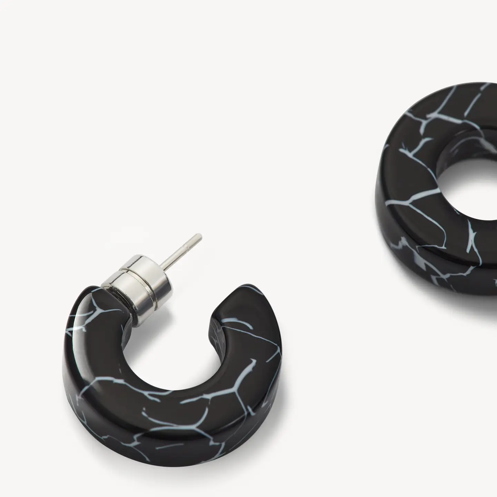 Compact, chunky hoops handmade from our Italian bio-acetate with engraved barrel backings.