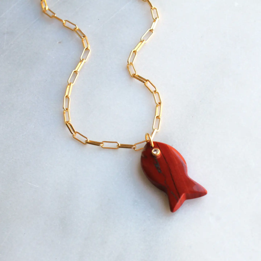 The Silver Wren - Large Gemstone Fish Pendant Necklace (Red Carnelian)
