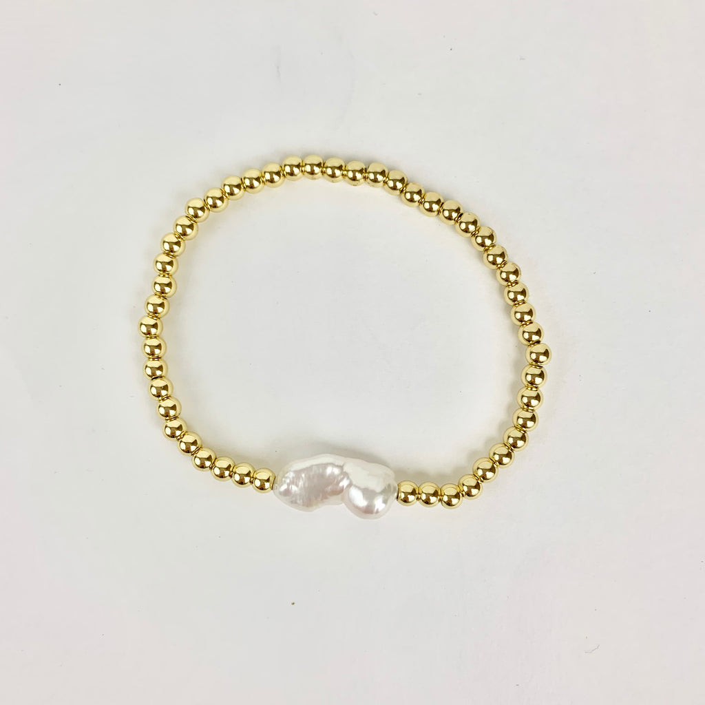 Carrie Rhea - Freshwater Pearl Bead Bracelet (Gold/White)
