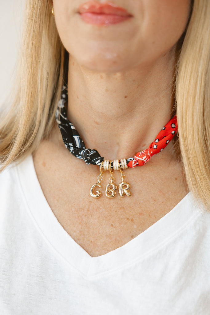 Pattino Collection - GBR Scarf Necklace/Bracelet (Gold Puffy Charm)