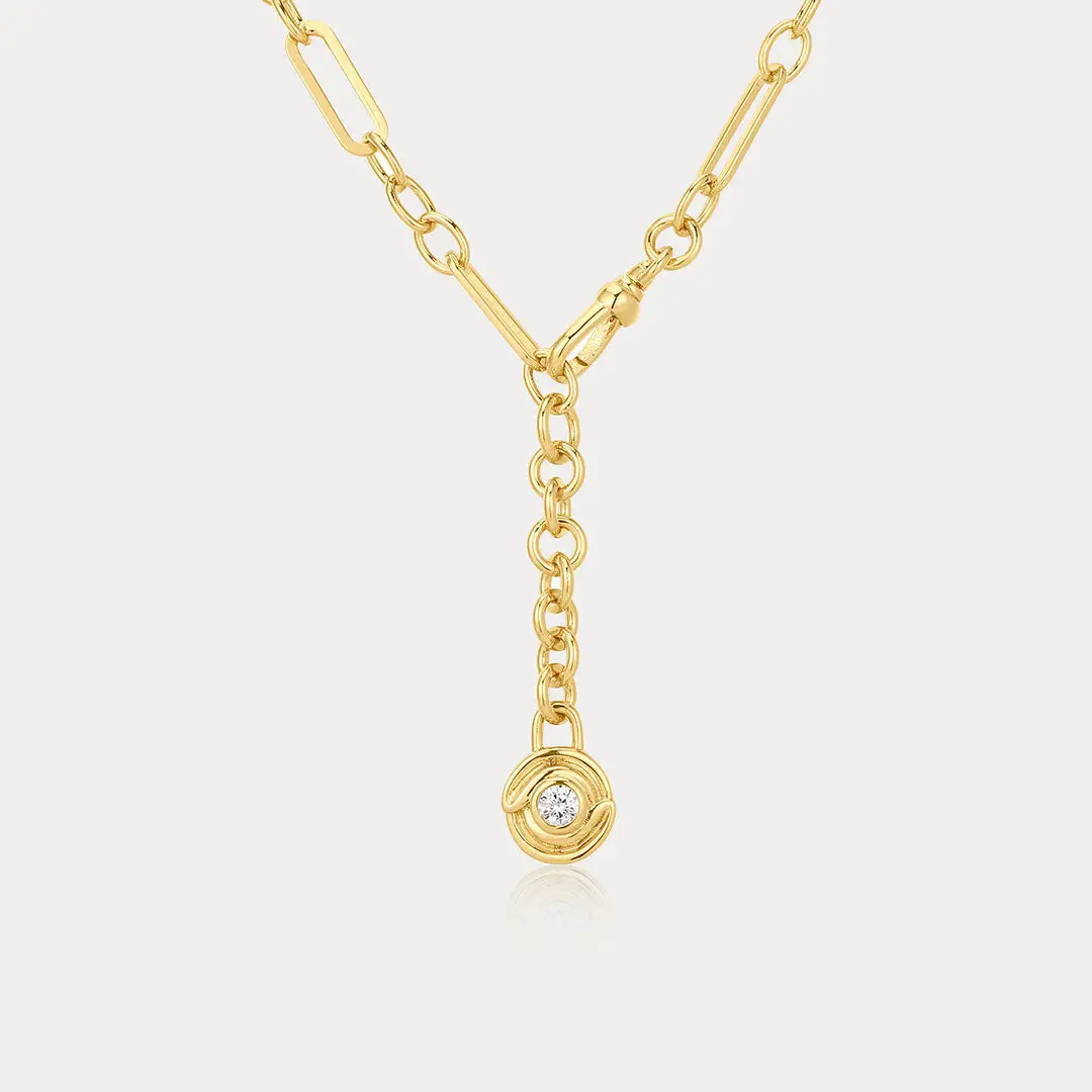 Luv AJ - Wave Bezel Lariat Necklace (Gold)
