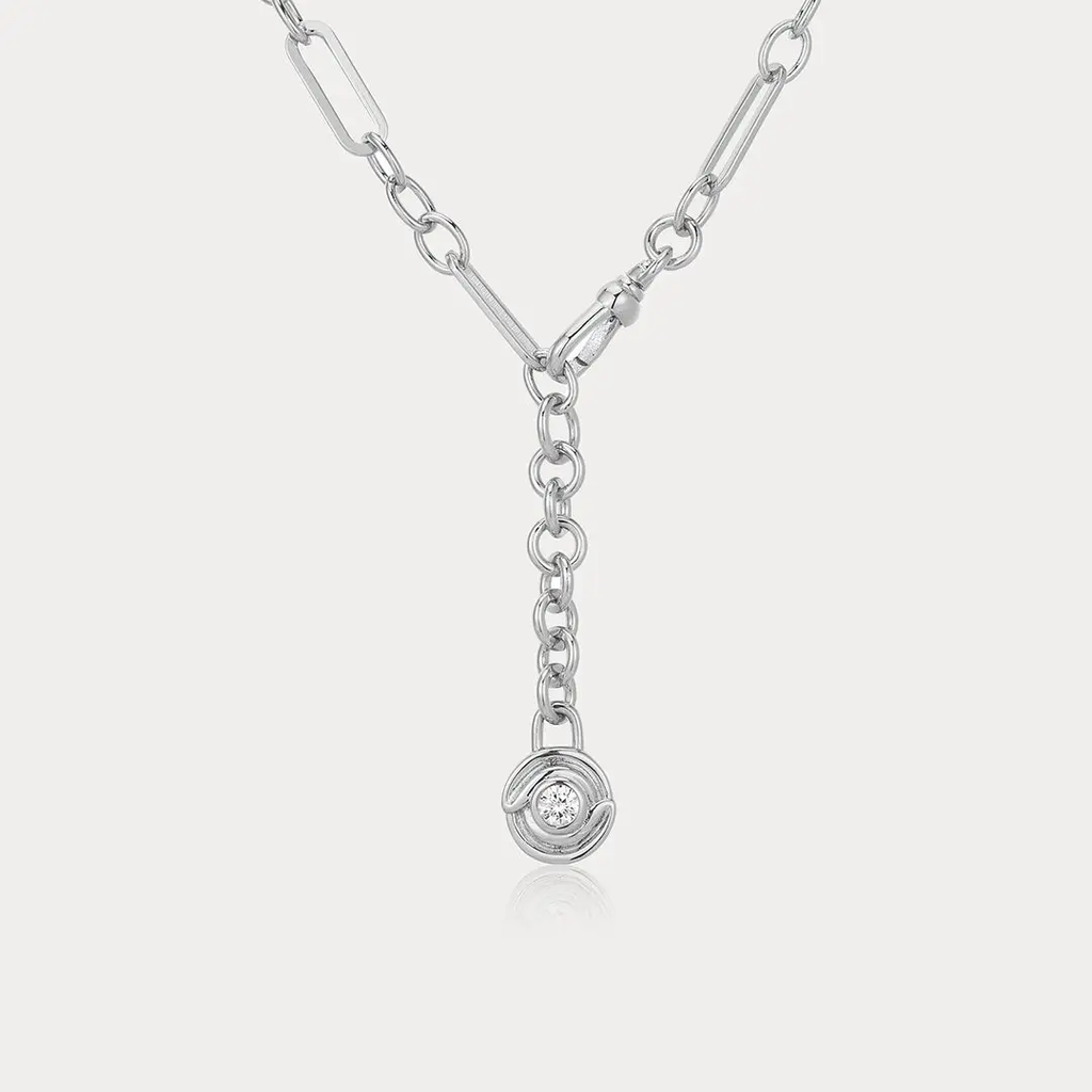 Luv AJ - Wave Bezel Lariat Necklace (Silver)