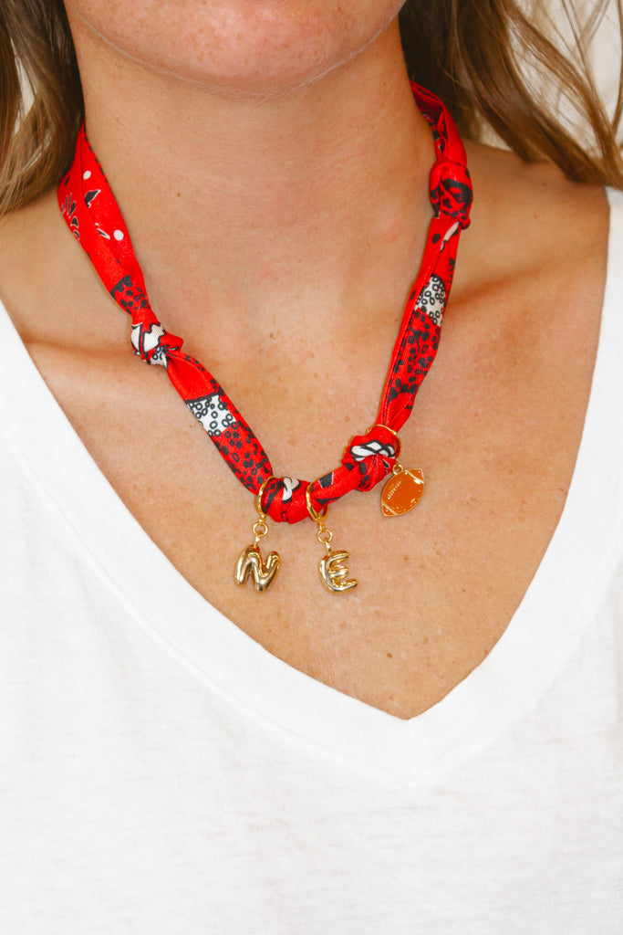 Pattino Collection - NE Scarf Necklace/Bracelet (Gold Puffy Charm + Football)