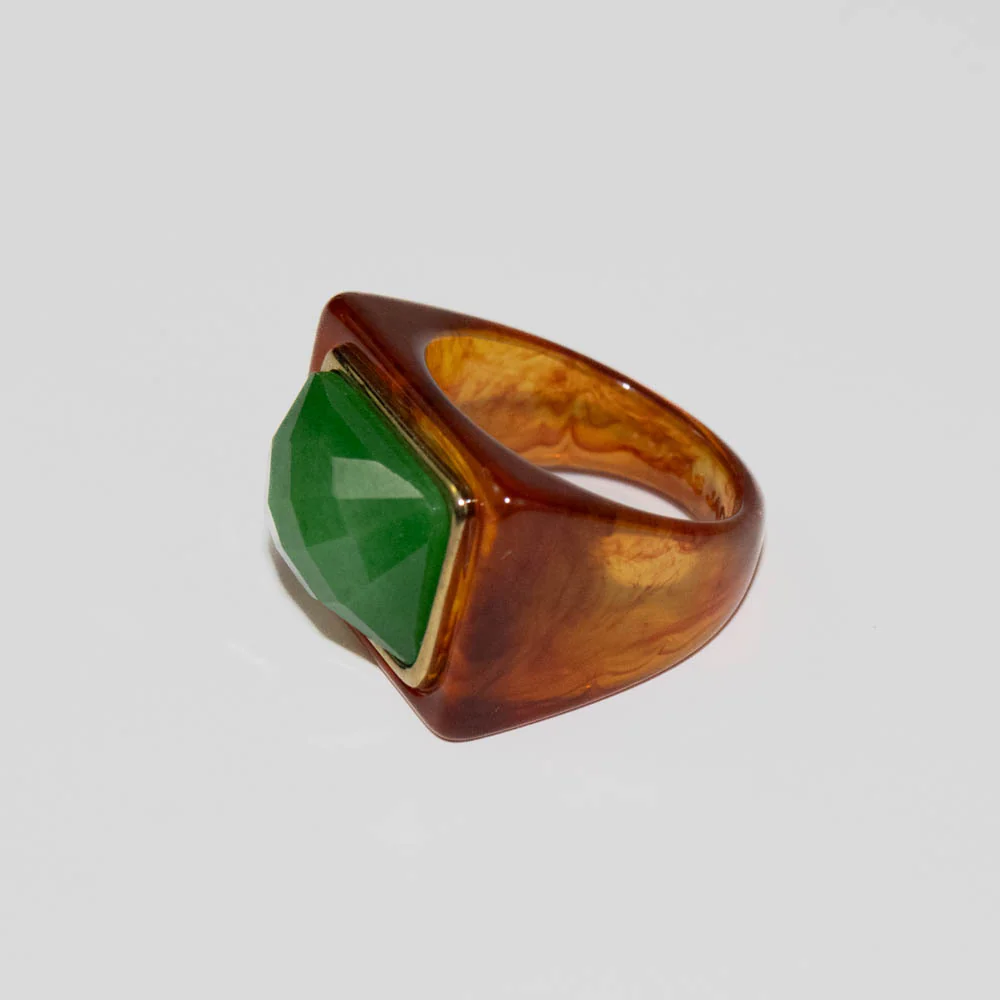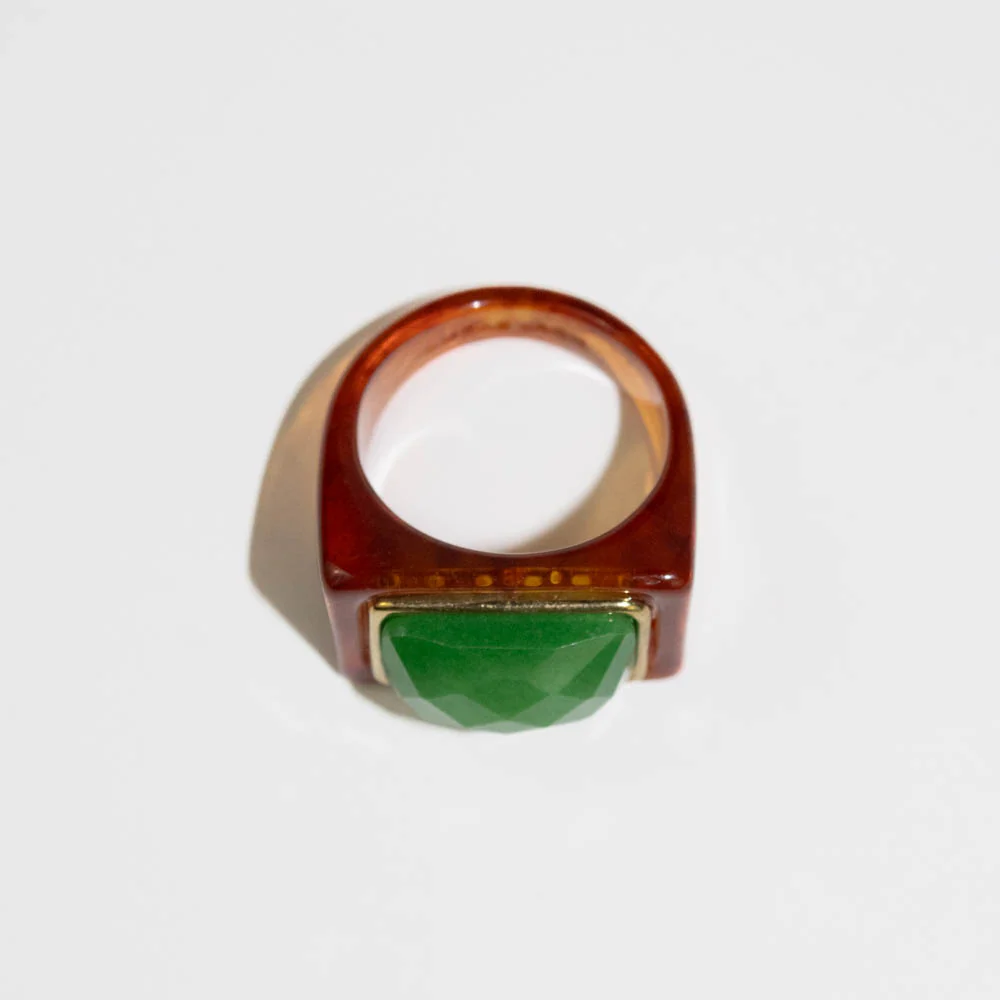 Lucas Jack - Firestone Resin Ring (Green Quartz/Gold)