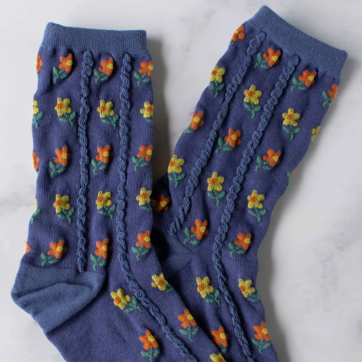 Tiepology - Kate Floral Casual Socks (Denim)