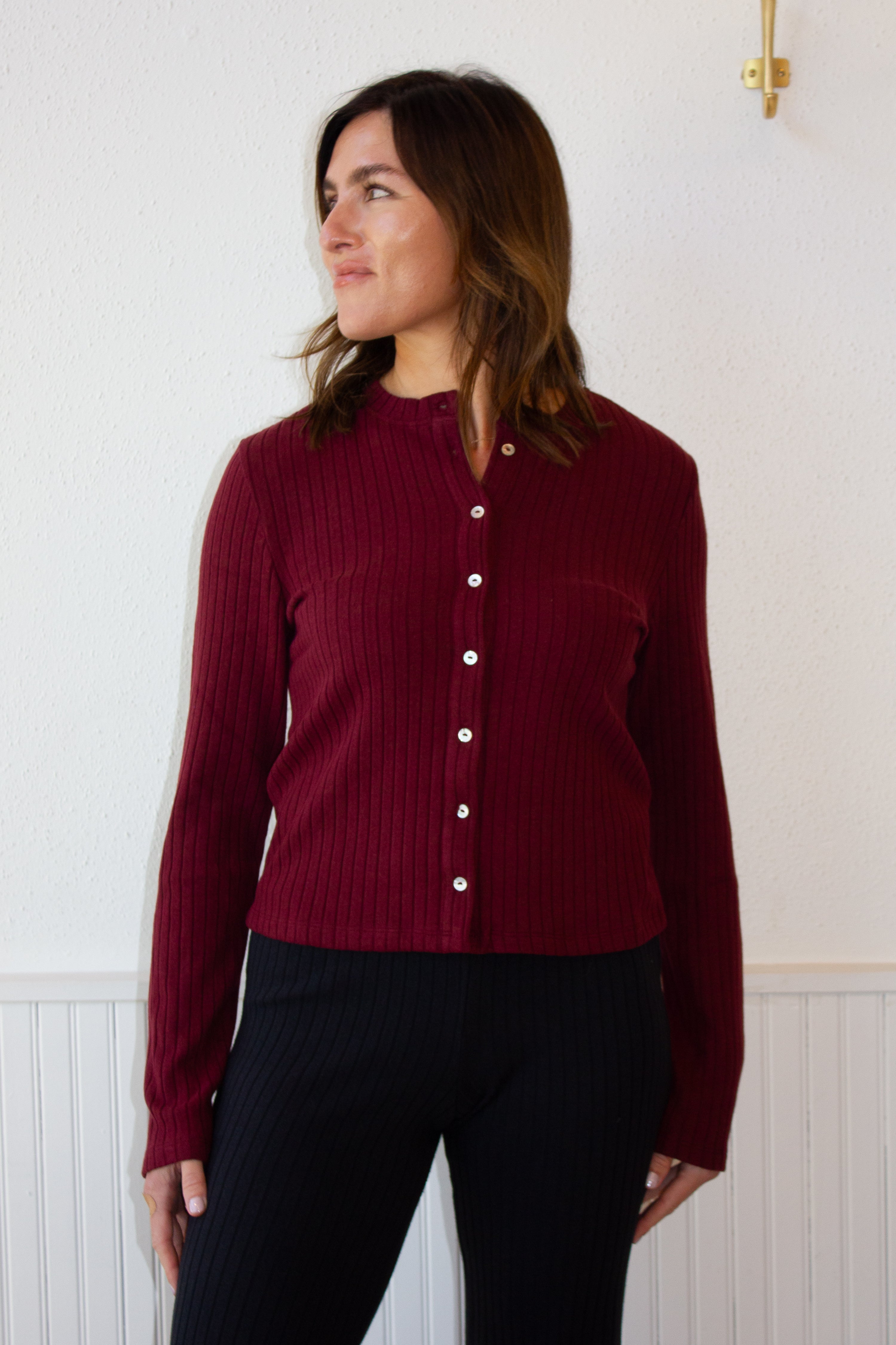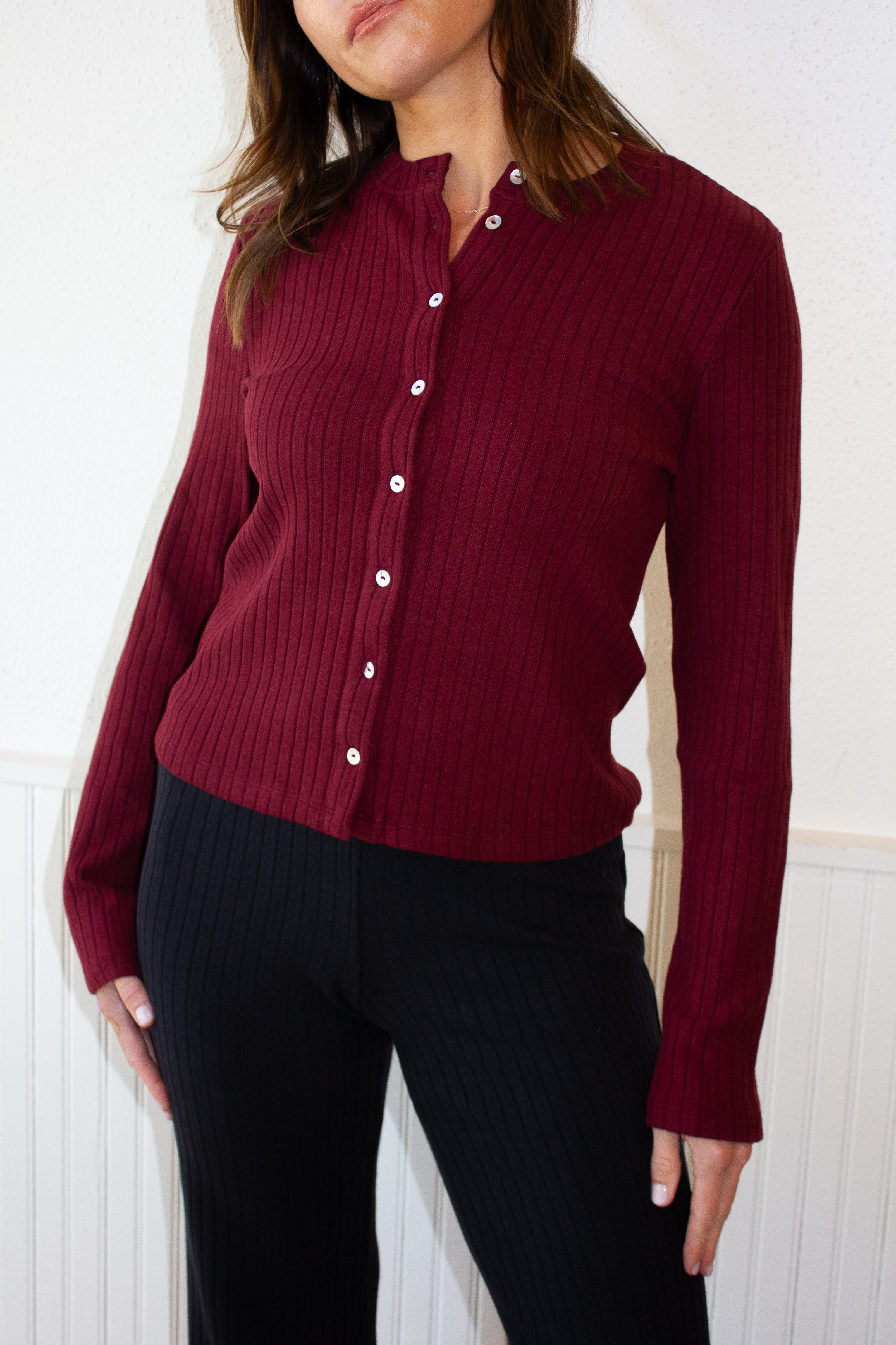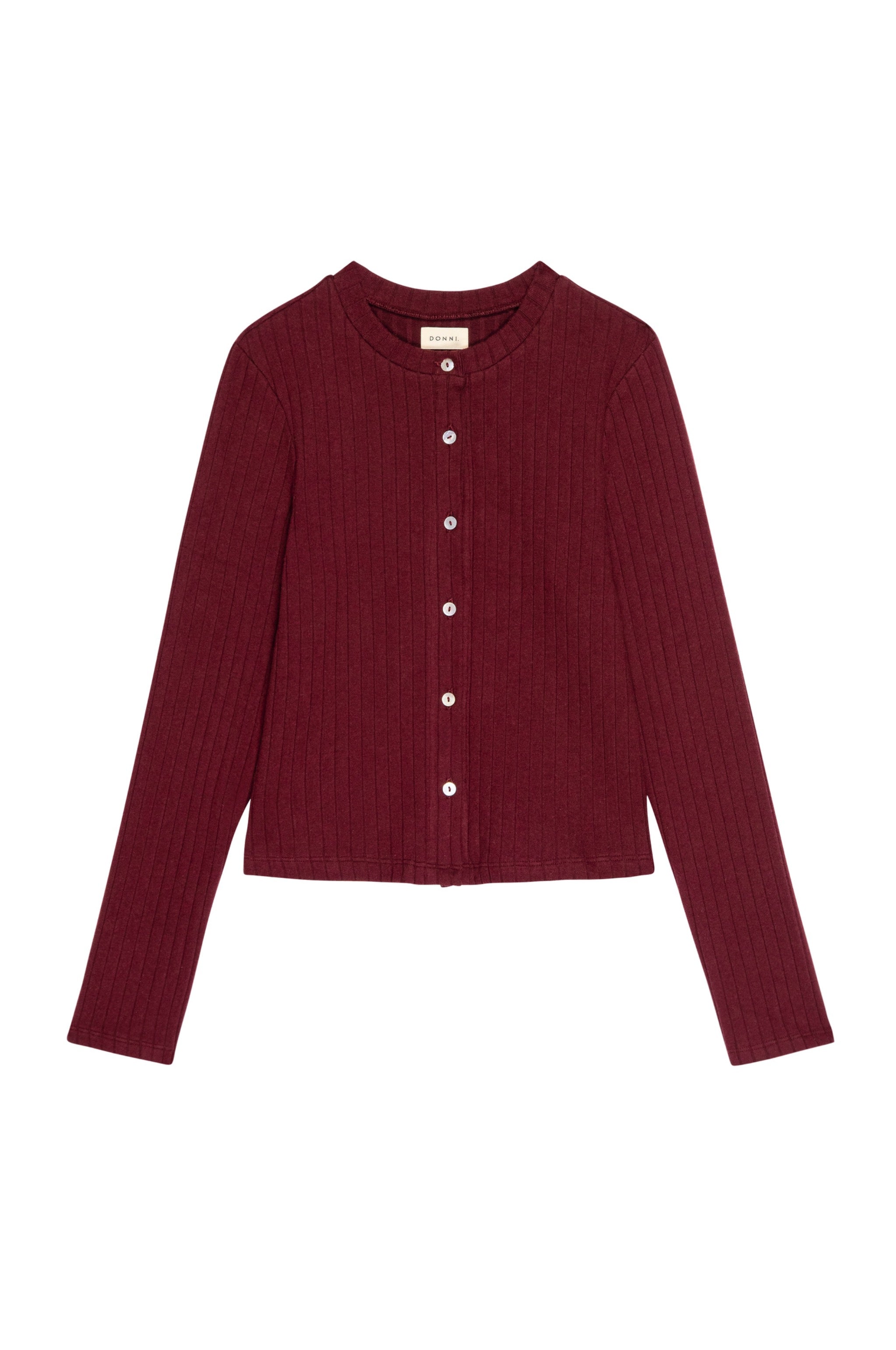 Crafted from super-soft and cozy sweater rib fabric. This cardigan features mother of pearl buttons, and a ribbed texture.