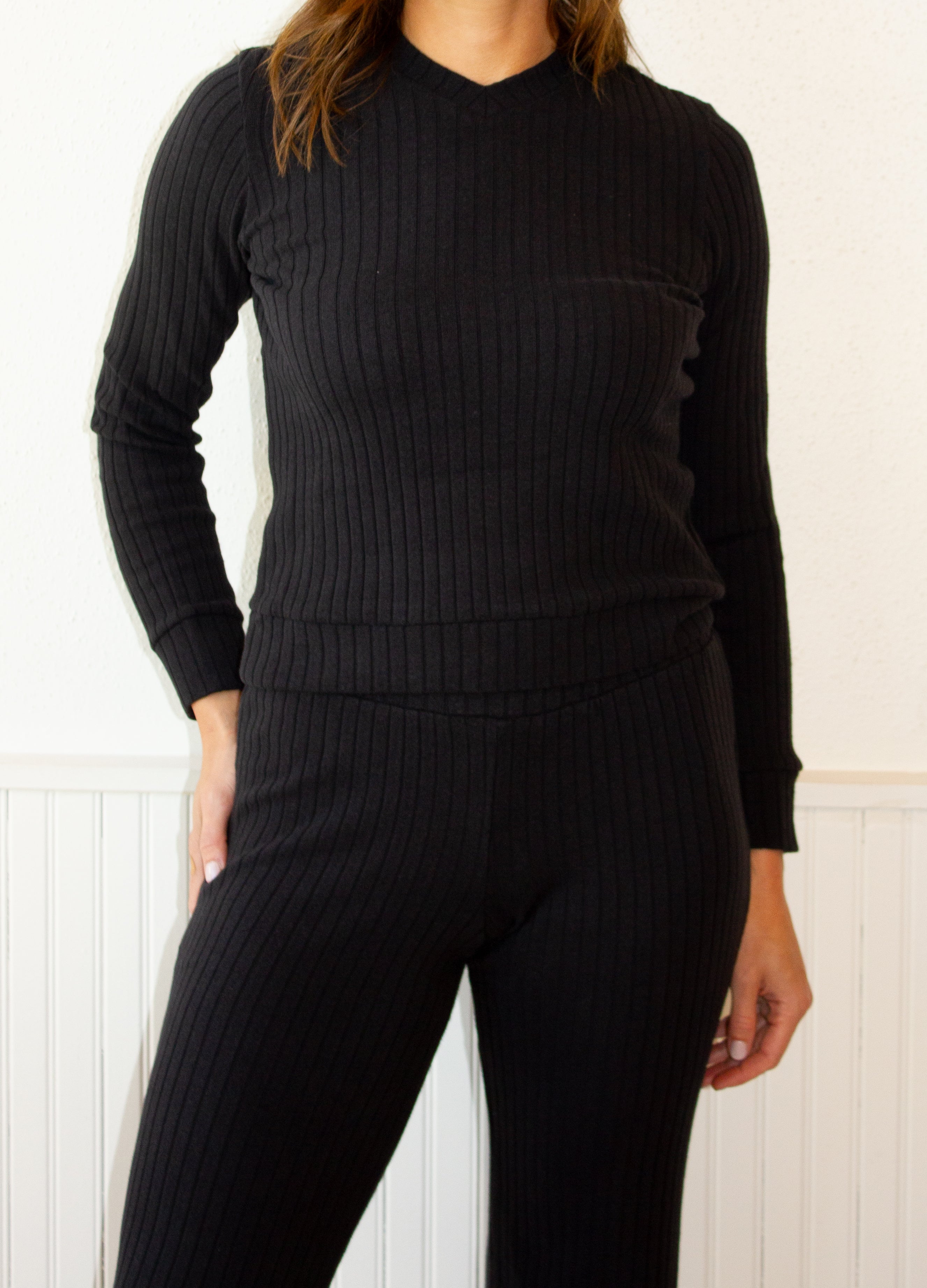 Crafted from super-soft and cozy sweater rib fabric. This sweater features a V-Neck, and a ribbed texture.