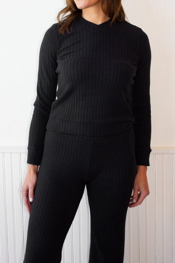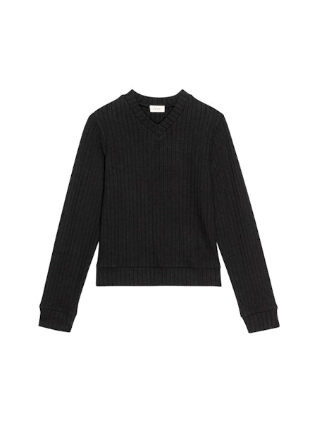 Donni - The Sweater Rib V-Neck (Jet) - Small is backordered and will ship as soon as it is back in stock.