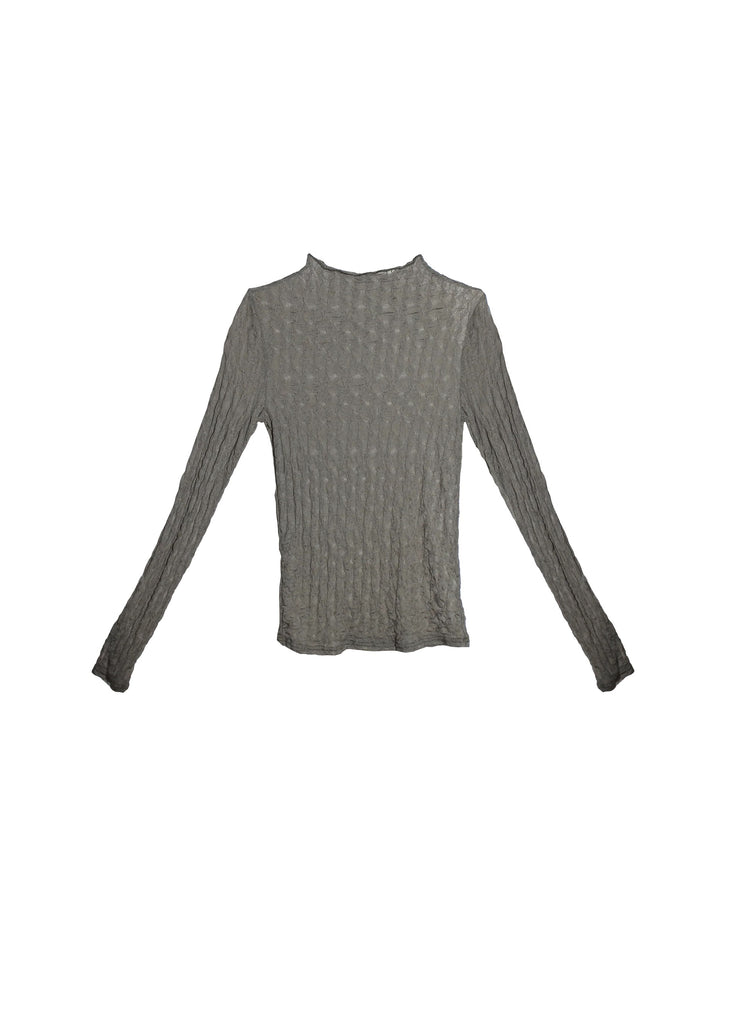 The Mock Neck Long Sleeve Top in Olive Green is made from soft, stretchy lace with a close, comfortable fit. Features a high neckline and subtle transparency. Lightweight and breathable for layering or wearing on its own.