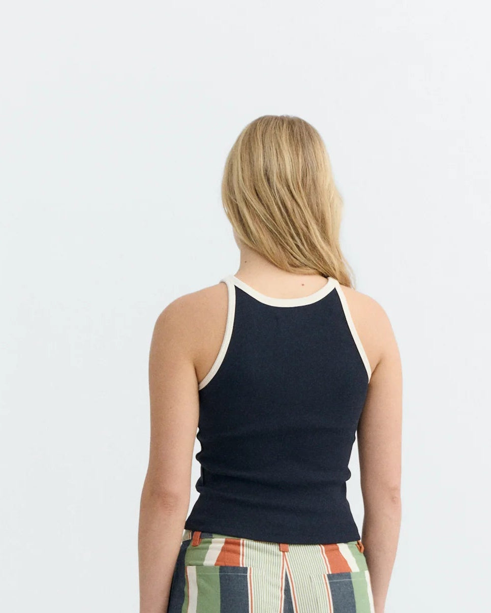Thinking Mu - Contrast Harriet Top (Navy Pannacota)