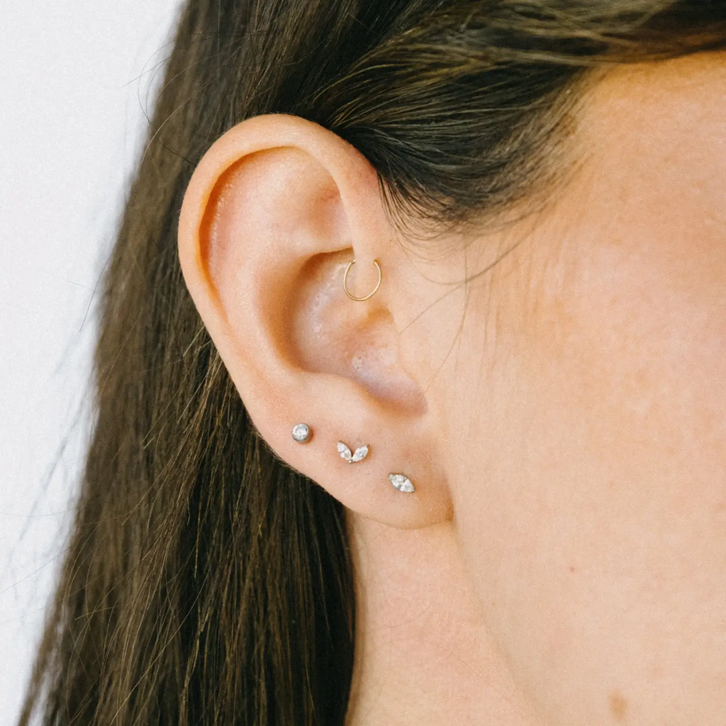The earrings you’ll never want to take off. Our threadless flat back studs are designed for everyday comfort - no poking, no snagging, just effortless shine. Made from implant-grade titanium, they’re safe for sensitive ears and perfect for sleeping, showering, and everything in between. Style them solo or stack them for that cool-girl, always-put-together look.