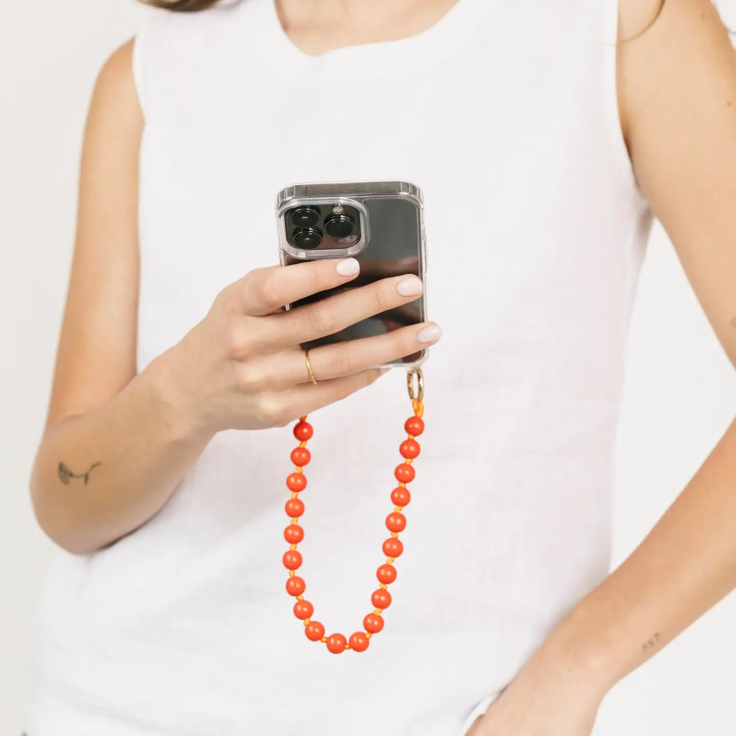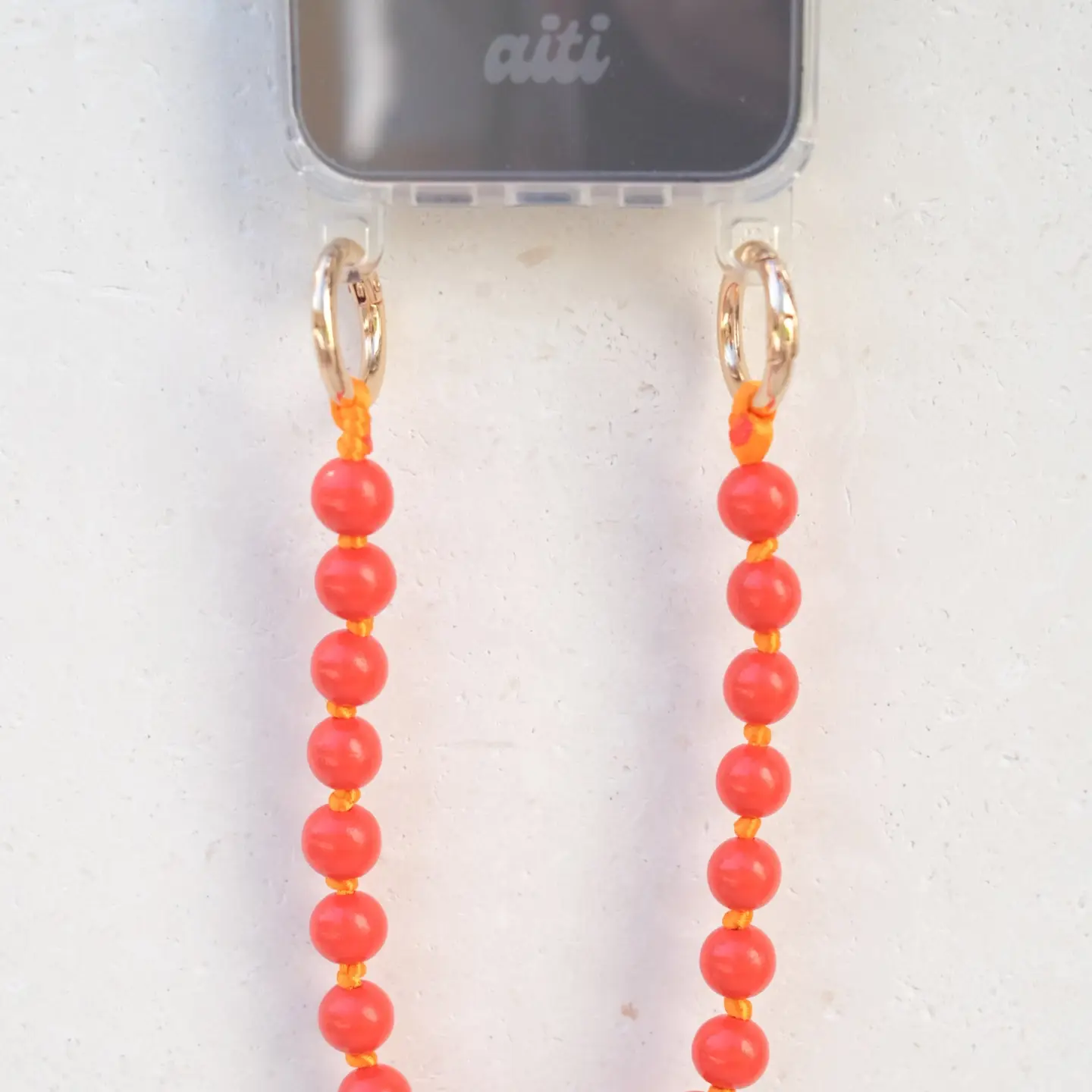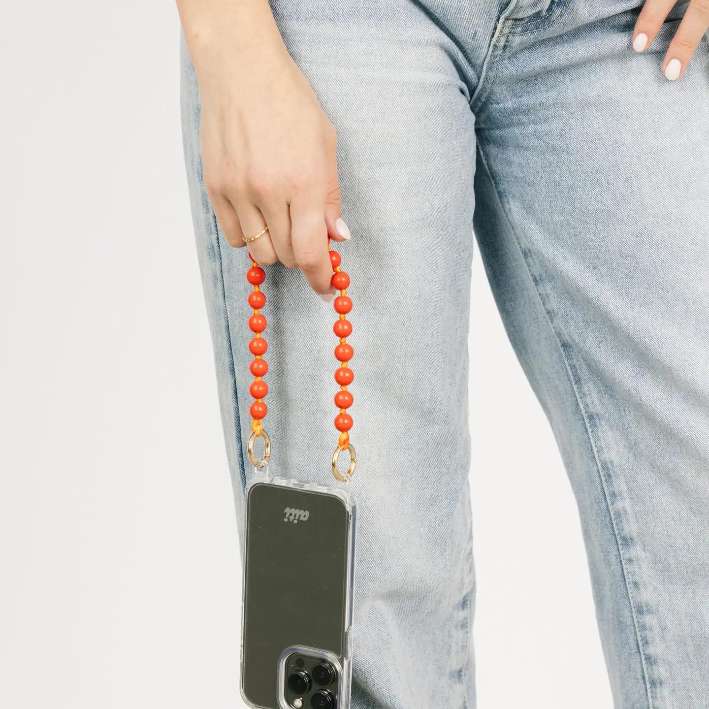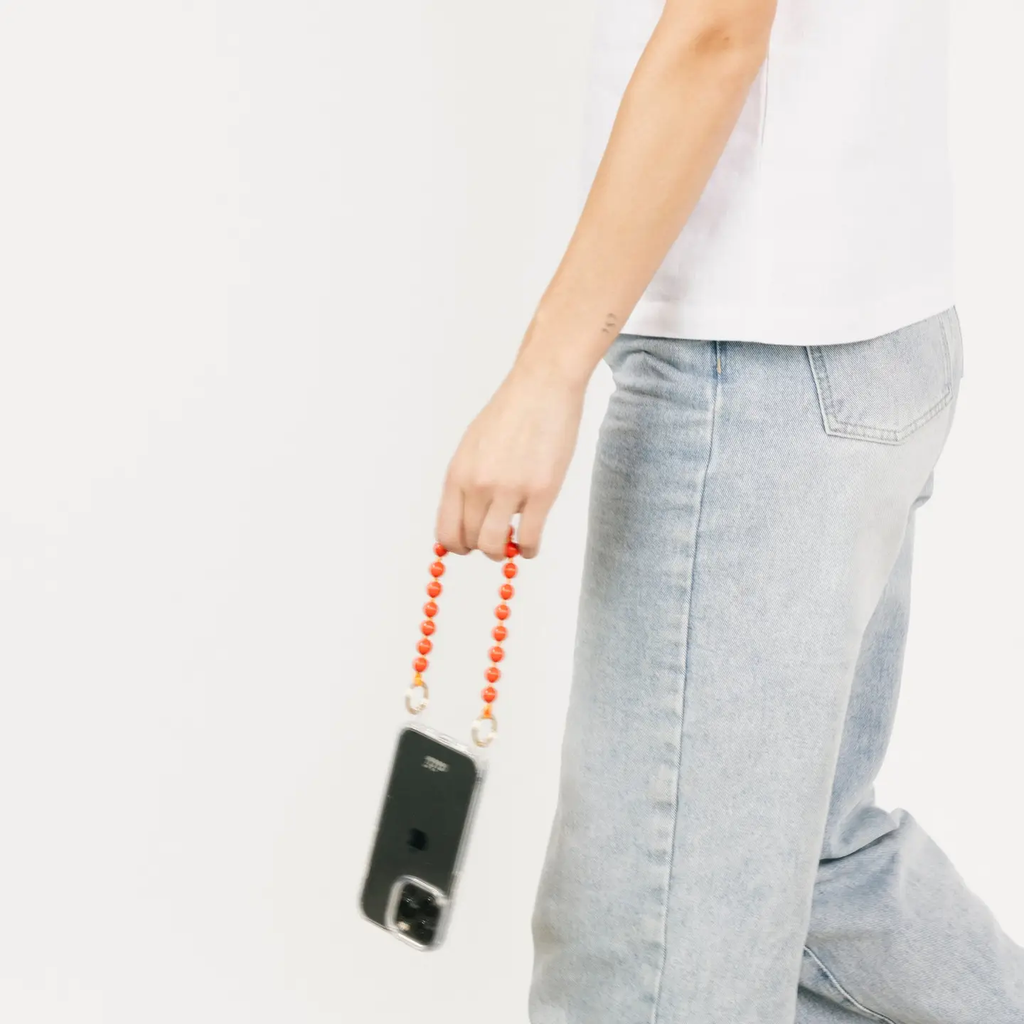 Aiti's orange wood phone chain allows you to be hands-free with your phone (dangle it from your arm or wrist), yet it's perfect for keeping your phone within reach. iPhone case or universal insert sold separately.