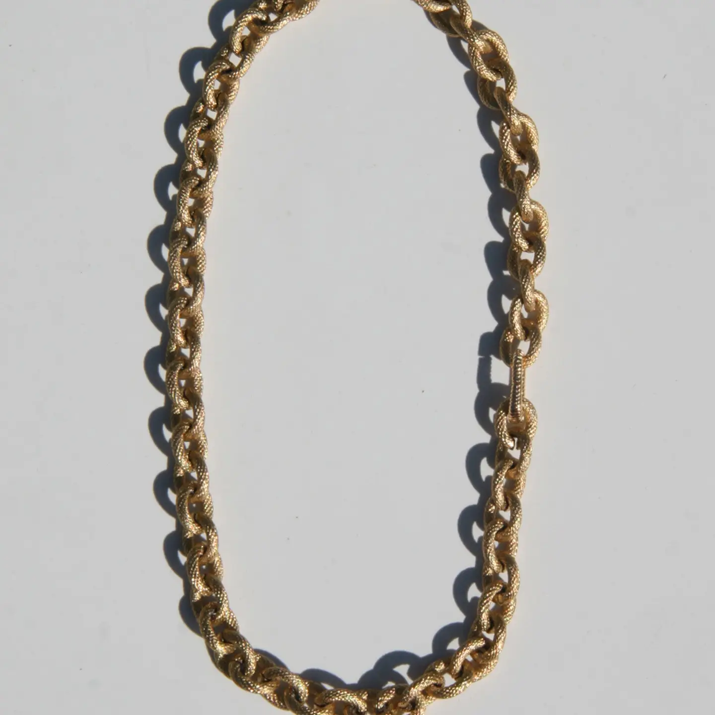 A luxurious and sophisticated cable link chain with a vintage-inspired, matte gold and textured finish. Elevate your aesthetic with this timeless and exclusive chain.