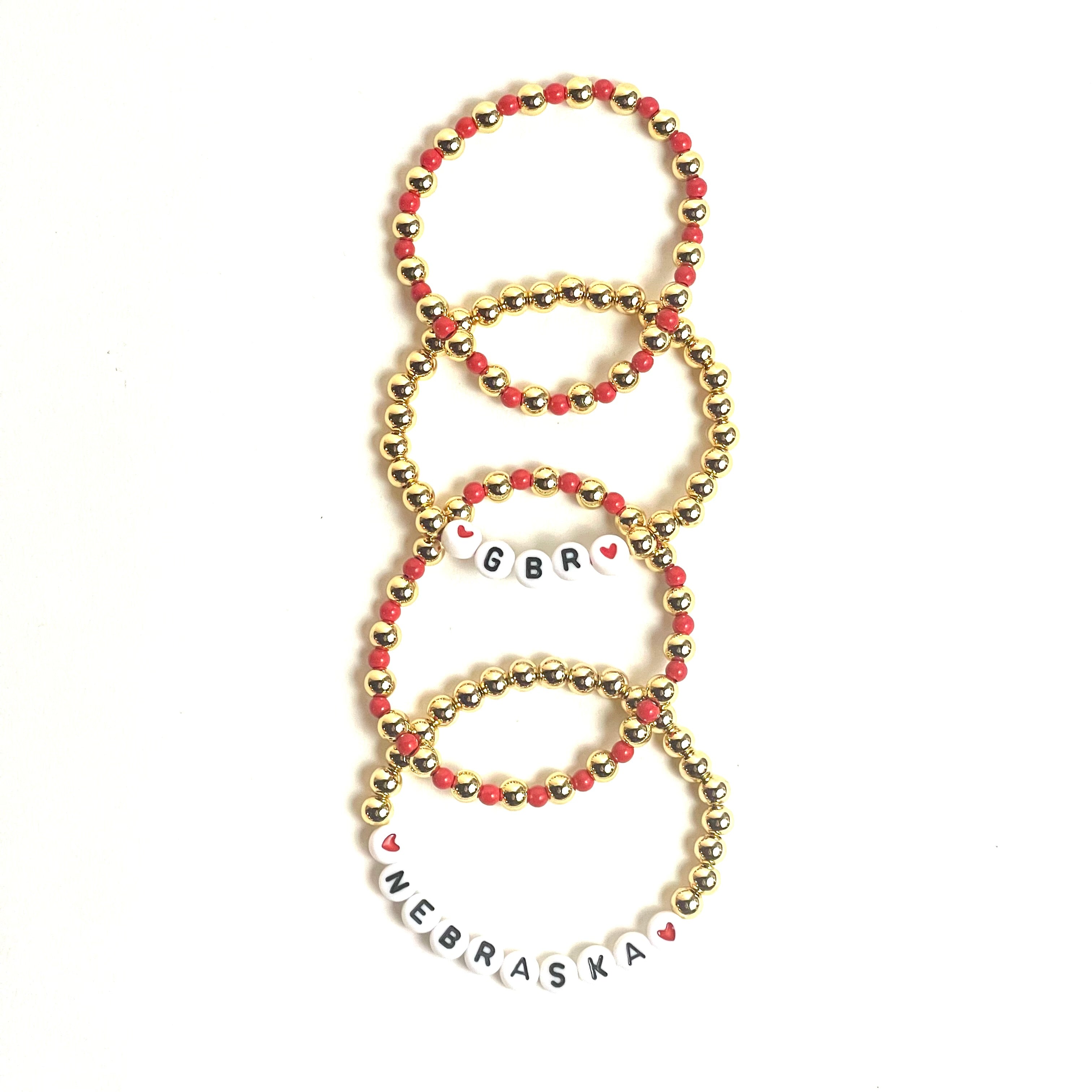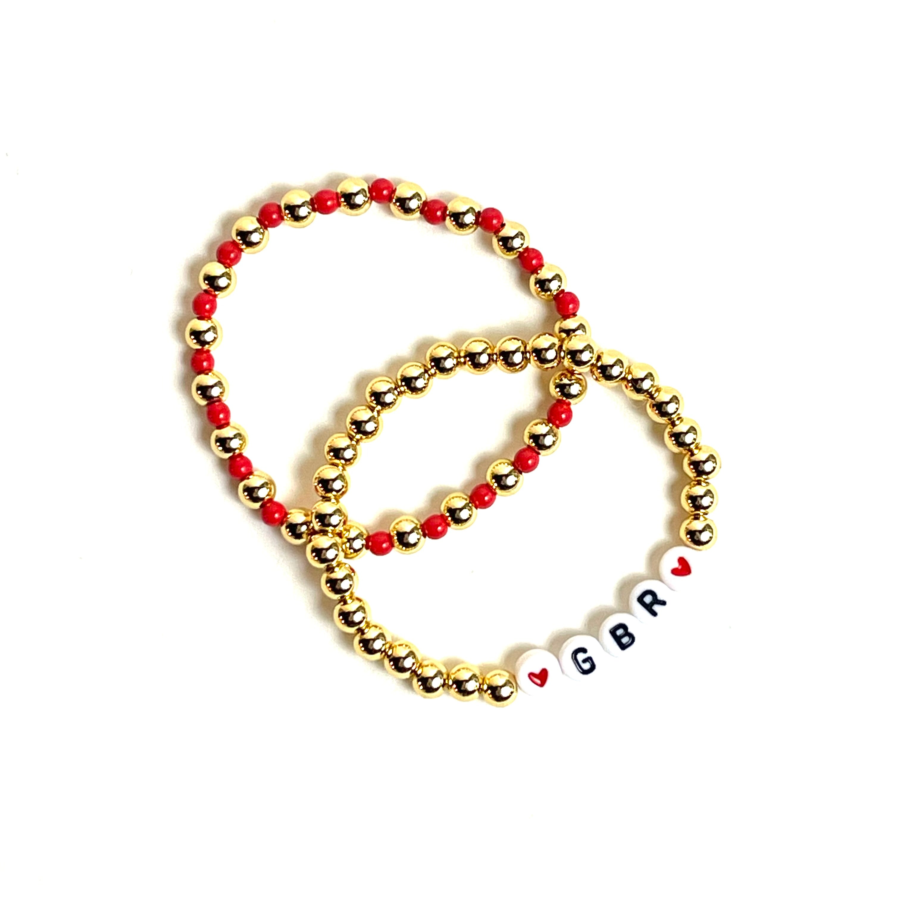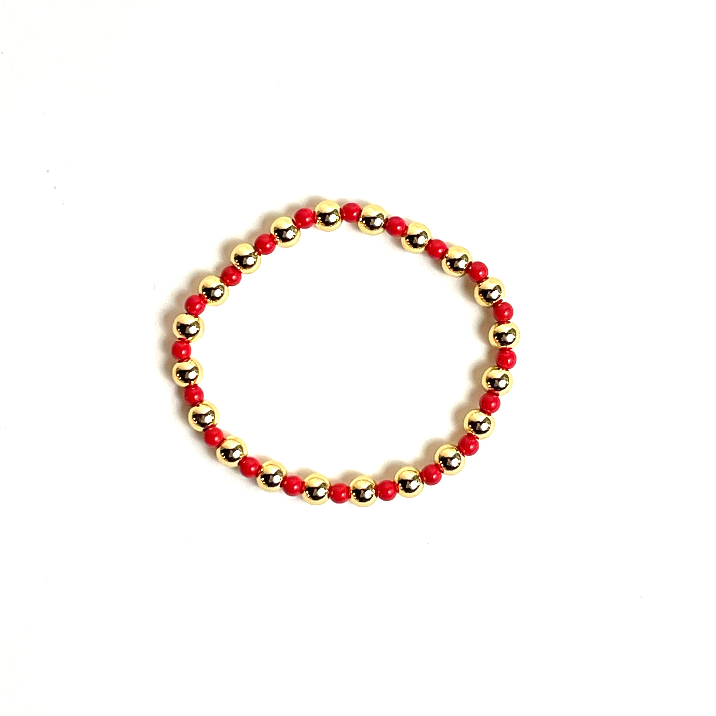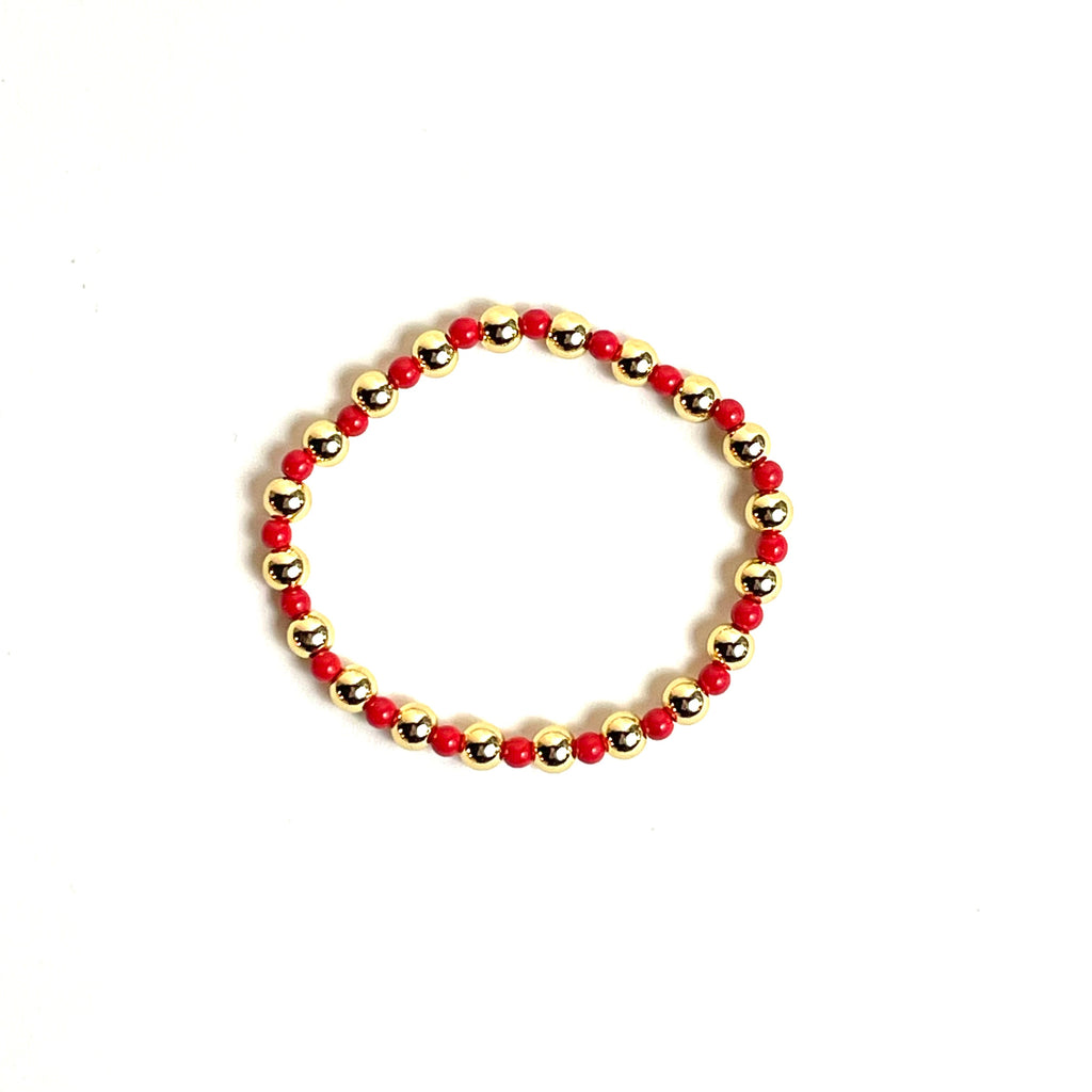 Carrie Rhea Designs - Ball Beaded Bracelet (Red & Gold)