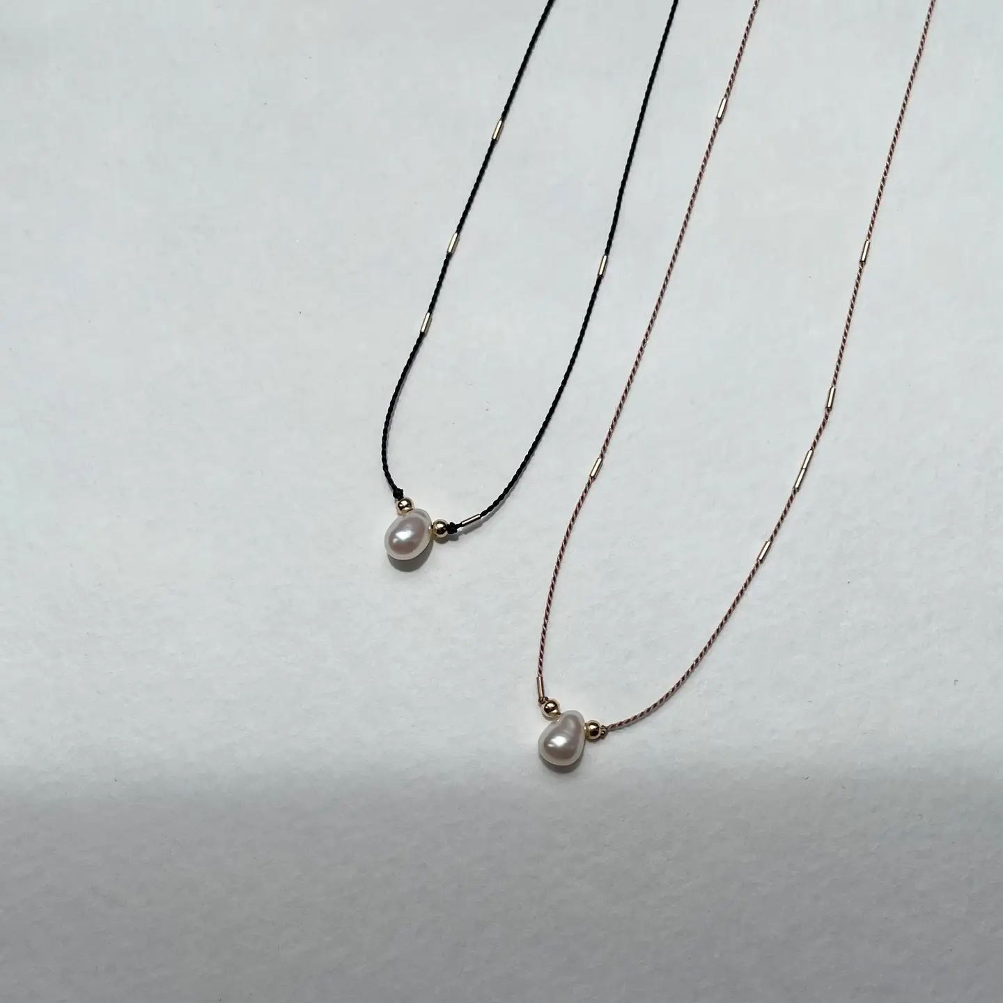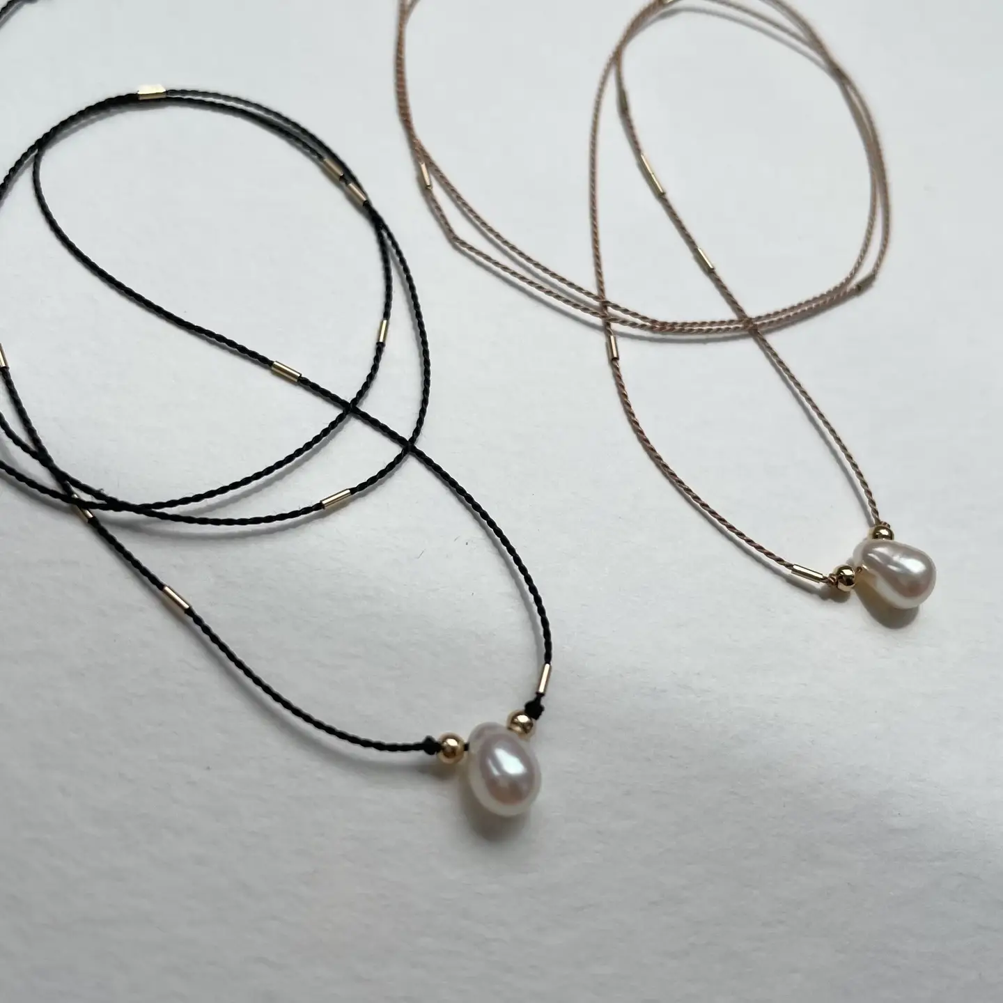 Cinq - Droplet Silk Necklace (Beige, 16")