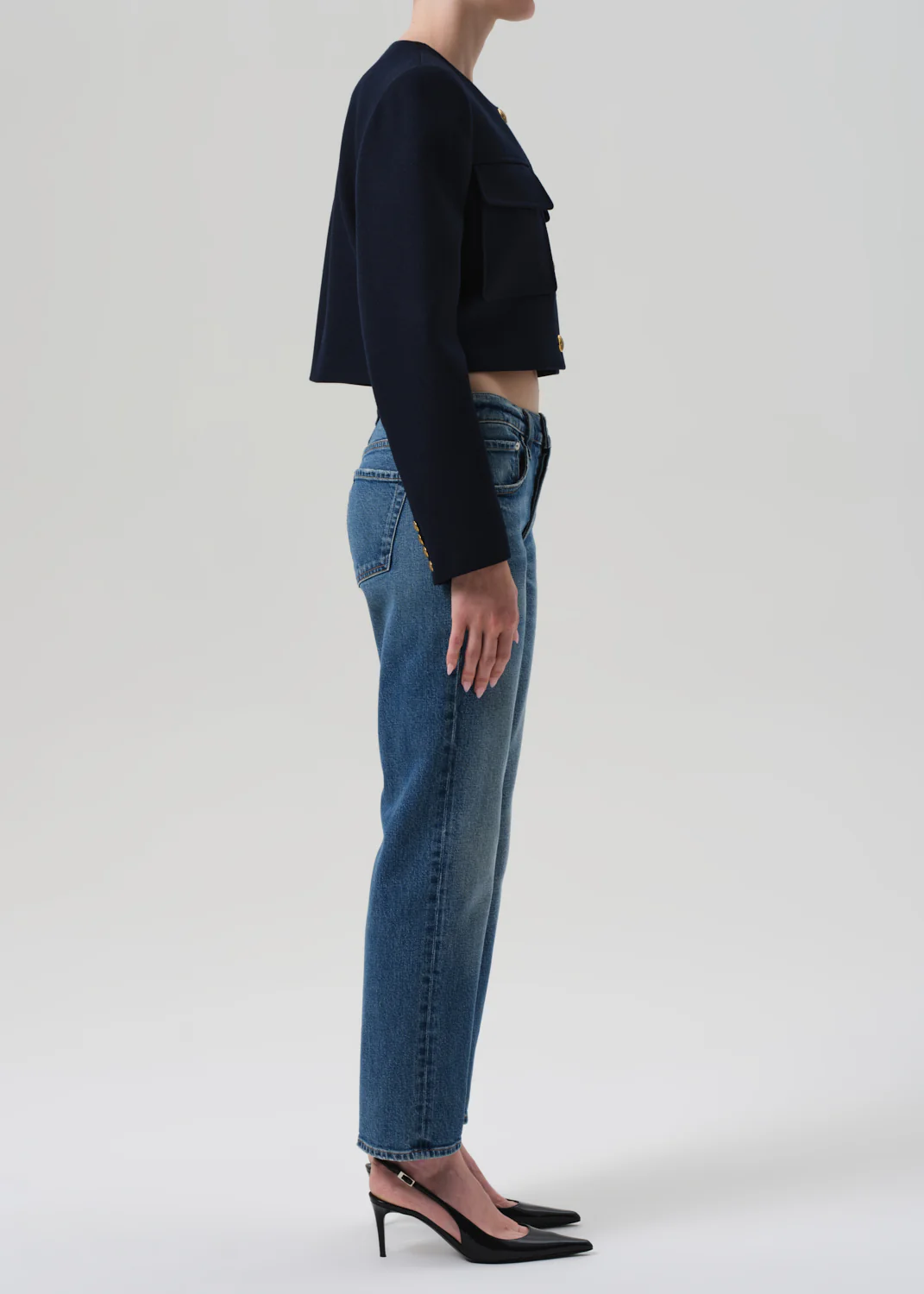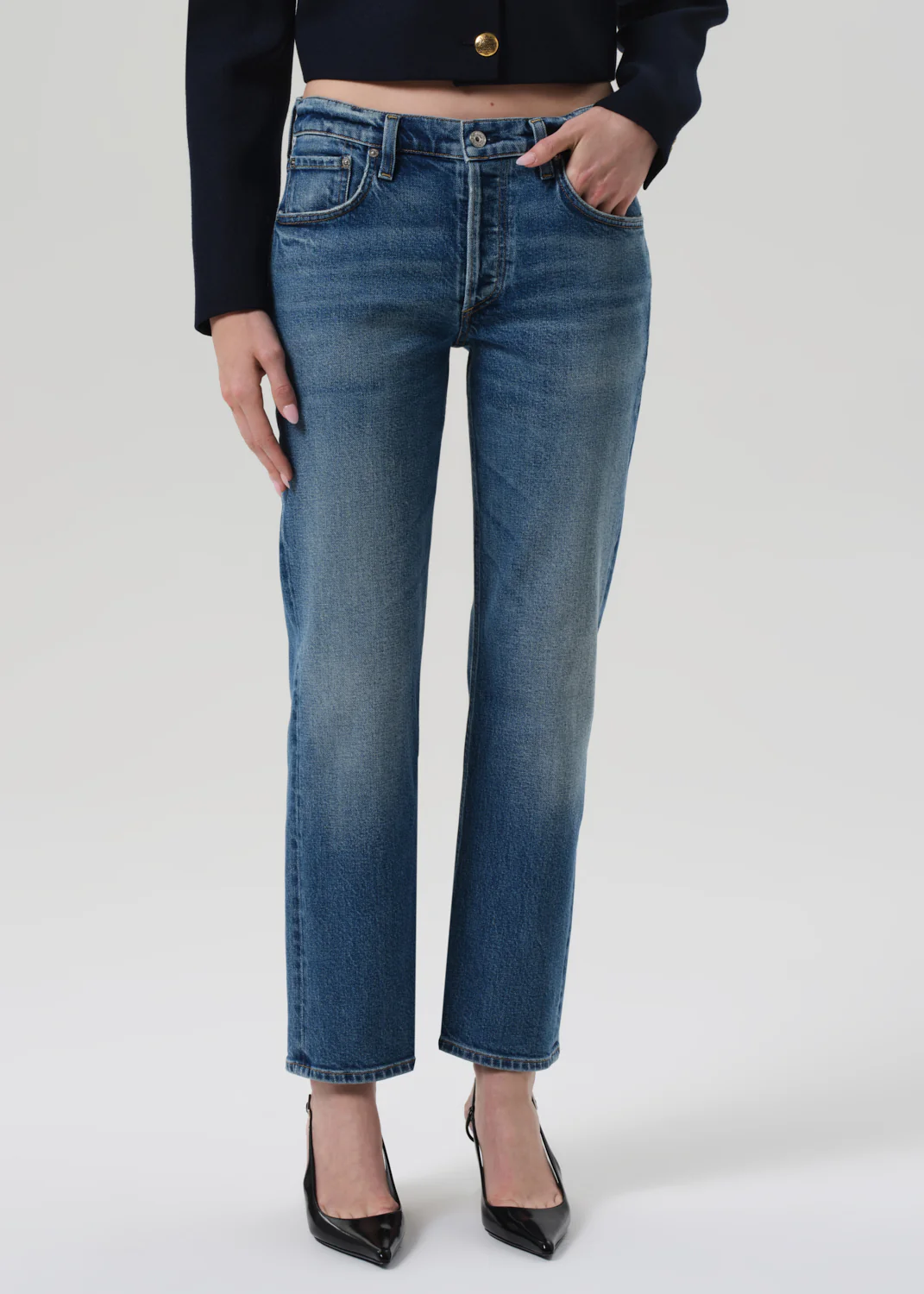 With a nod to early 2000s minimalism, Citizens of Humanity’s ‘Anissa’ jeans reimagine the low-rise silhouette in a refined, straight-leg cut. The ‘Alma’ wash—an endlessly versatile medium indigo—is softened with subtle fading and whiskering to evoke a vintage sensibility. Crafted from comfort-stretch regenerative cotton with a remarkably soft hand, they offer ease without sacrificing structure. Style yours with a slouchy knit or crisp shirting for a nonchalant, downtown look.