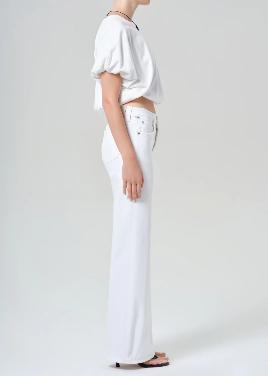 The Kimberly is a high-rise flare inspired by classic ’70s silhouettes, designed to elongate the leg and contour the waist. Crafted from regenerative cotton in clean white denim, it offers a soft yet structured feel that holds its shape while maintaining effortless comfort. Timeless and versatile, it’s a modern essential for refined everyday wear.