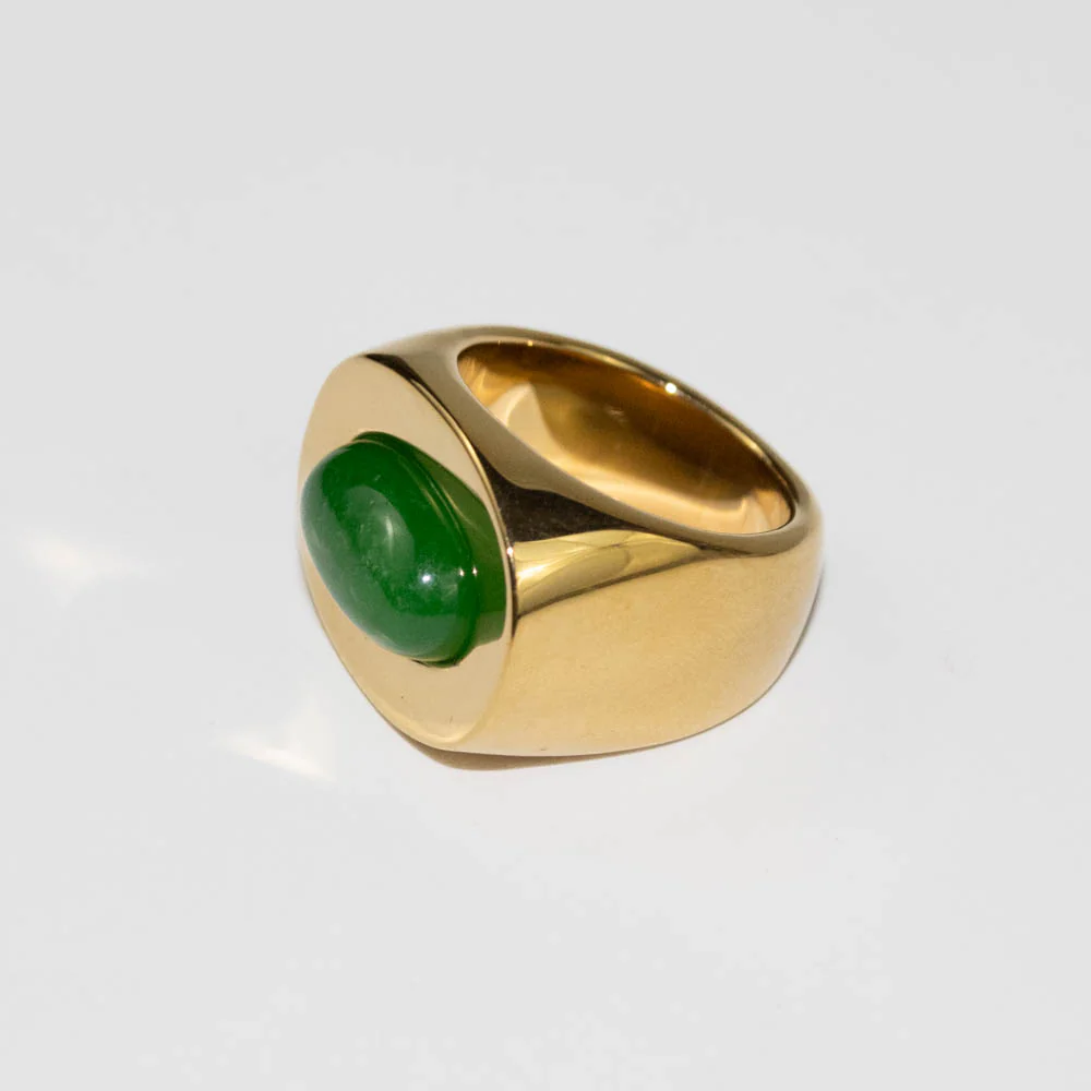 A granite resin band with round gold inlays adds a playful touch to your look. Accented with 18k gold-plated brass, this piece embodies sculptural elegance with a chic sense.