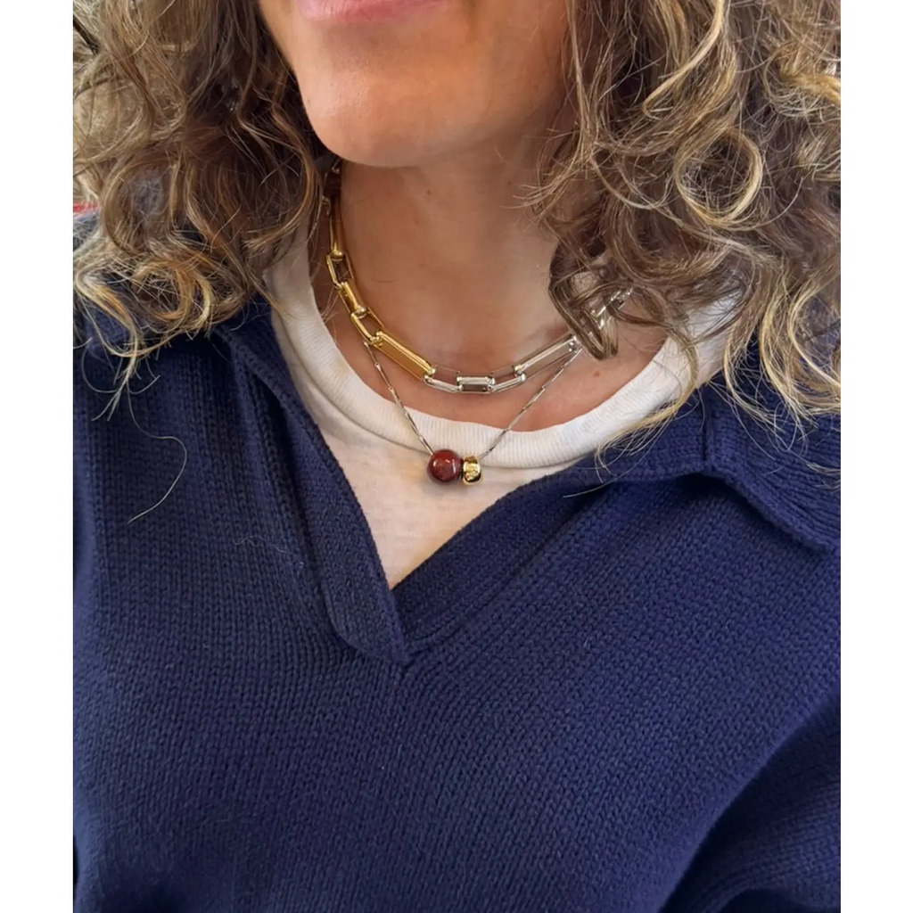 Introducing this mixed metal delicate necklace, featuring the refined La Homme chain on a smaller scale, accented by a metal bead and a carnelian bead.