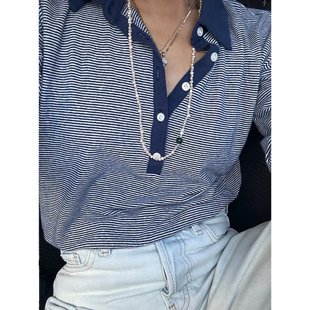 Tiny organic shaped freshwater pearls with a side round accent color bead. A longer delicate beaded necklace that can also be worn double wrapped.